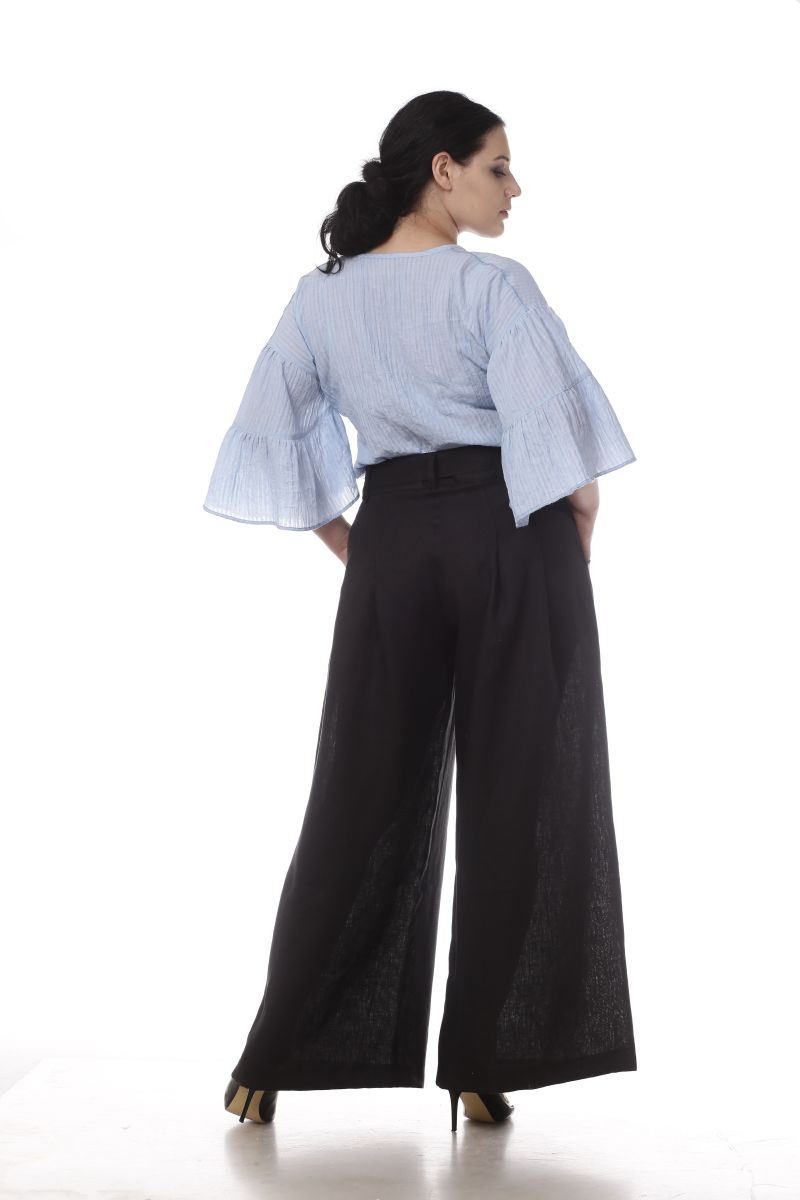 Описание: Брюки широкие, пояс, складки, карманы, пуговицы
