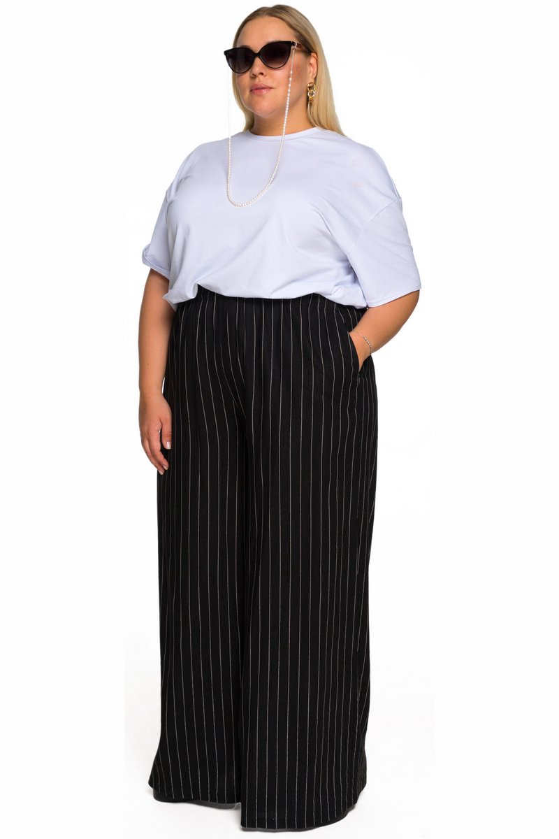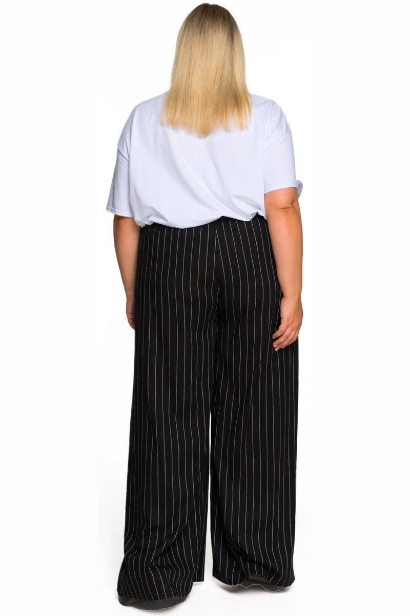 Брюки широкие из льна с карманами, черные в белую полоску *
