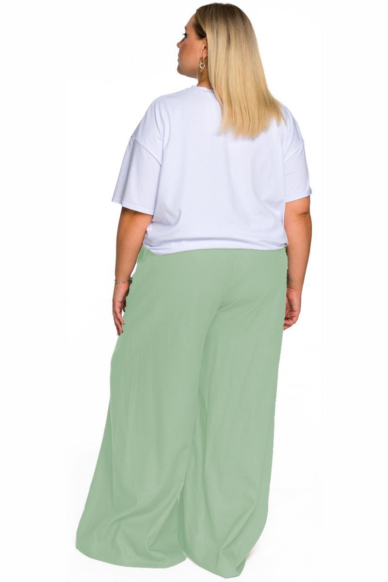 Брюки широкие из льна с карманами, цвет фисташковый