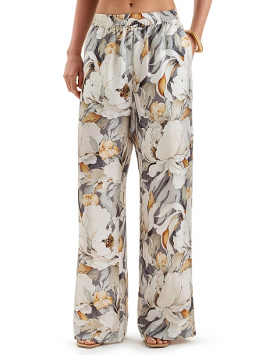 Брюки выполнены из премиального шелка. Такой состав обеспечивает исключительную мягкость, эластичность, тактильный комфорт и повышенную износостойкость ткани. Шелк «дышит» и поддерживает терморегуляцию, поэтому комфортен в любую погоду, прекрасно впитывает влагу и быстро высыхает. Брюки нежно, словно вторая кожа, обволакивают тело, не прилипают и эффектно струятся, очаровывая своей воздушностью. Они станут любимой вещью в вашем гардеробе, долго оставаясь актуальными и востребованными.