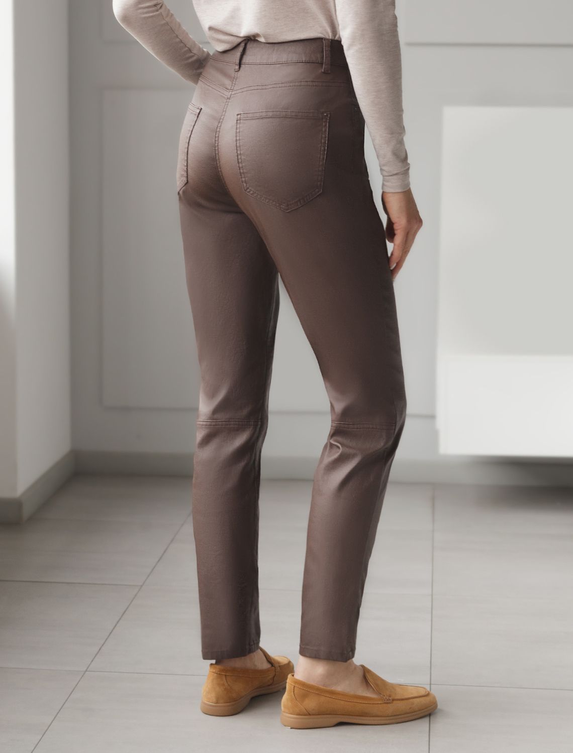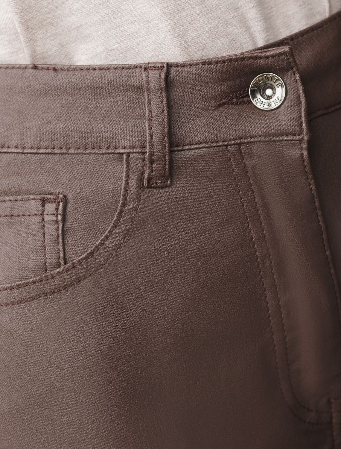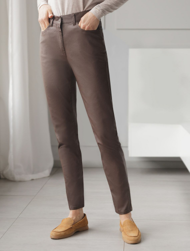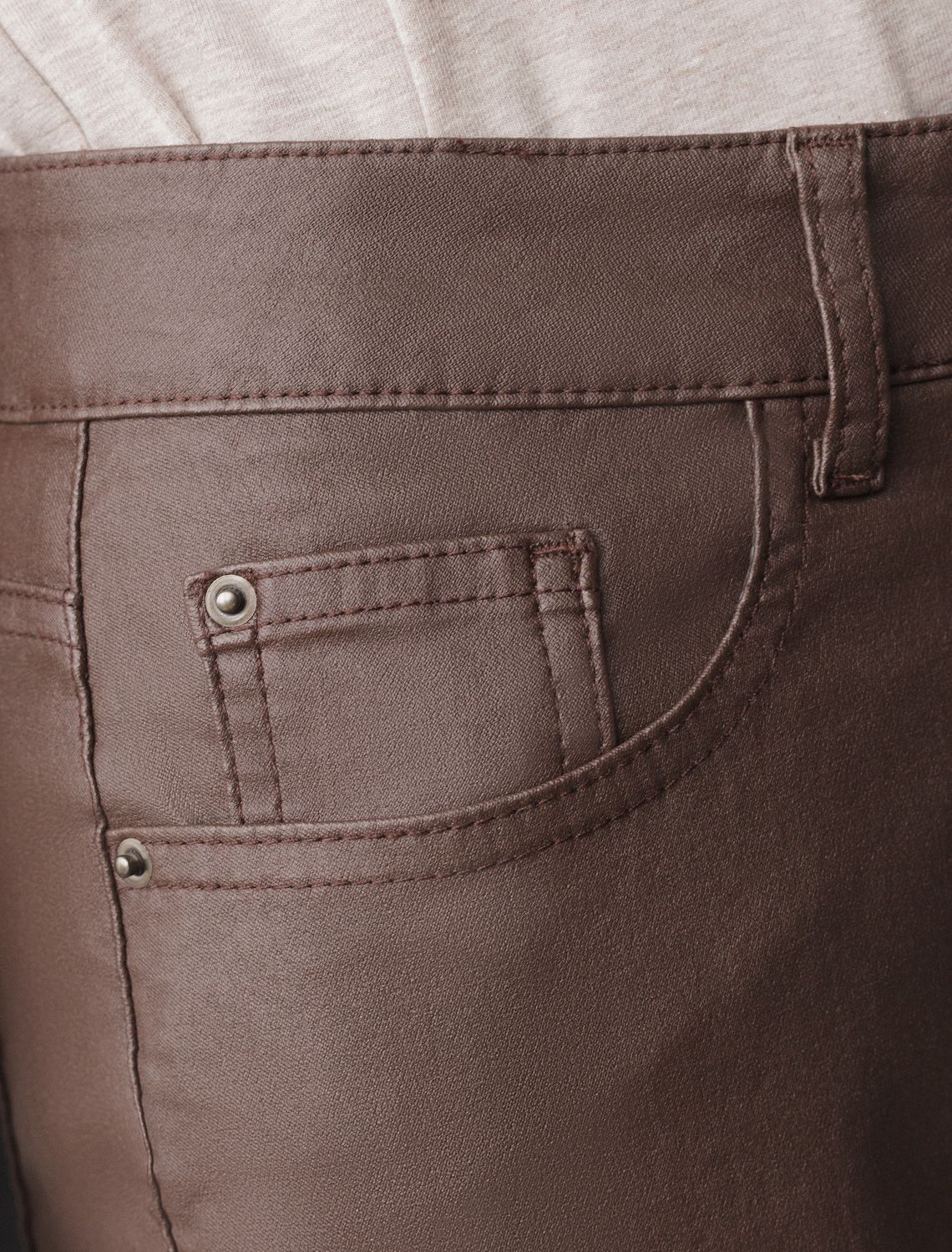 Брюки слим из эластичного хлопка с покрытием под кожу D24.273 коричневый