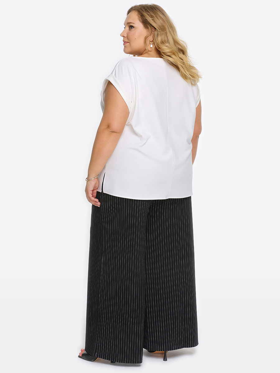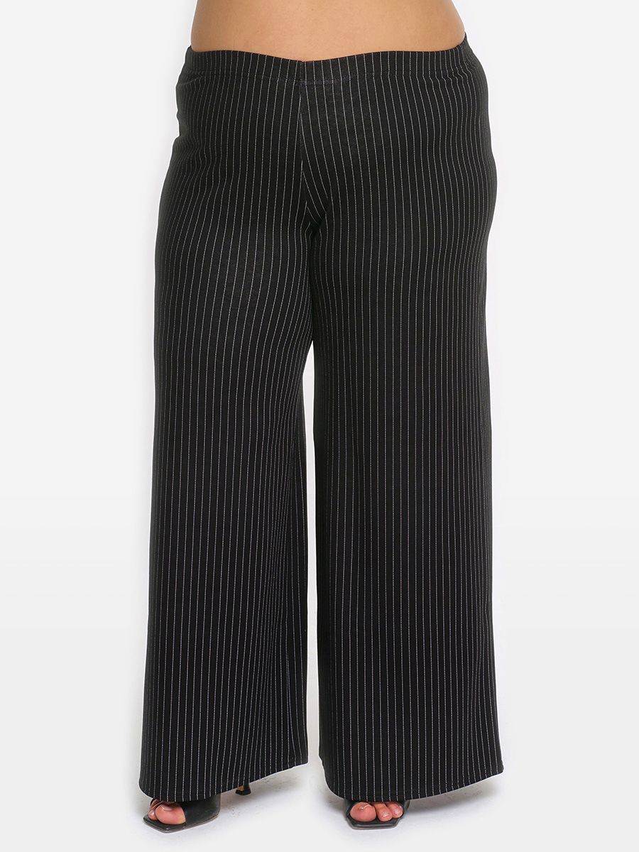 Брюки свободные из джерси, черный в полоску