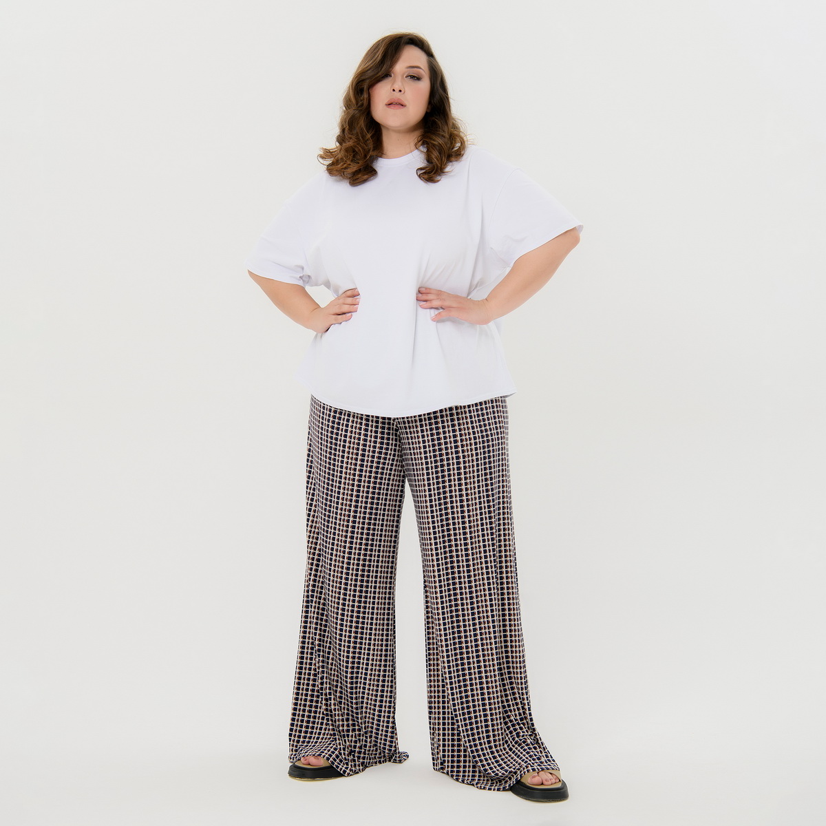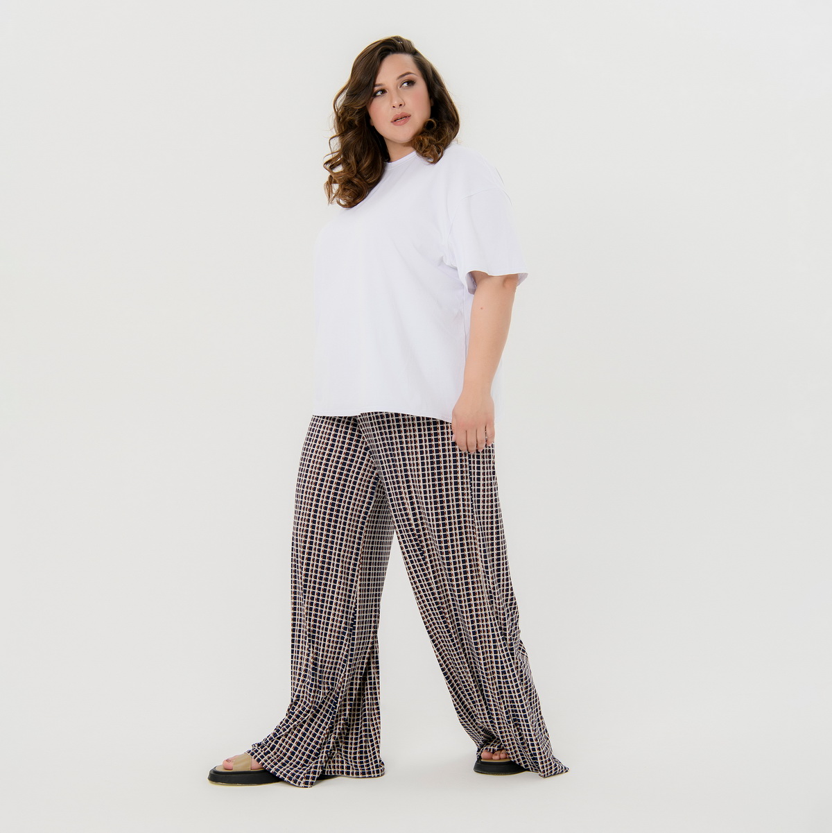Расклешенные брюки из струящегося трикотажа "масло. Верх на резинке шириной 3,5 см.