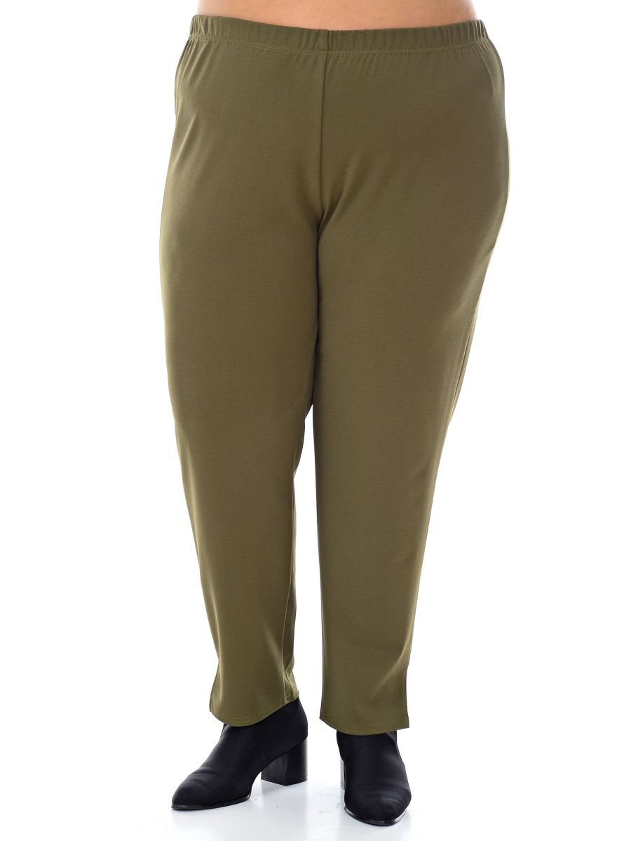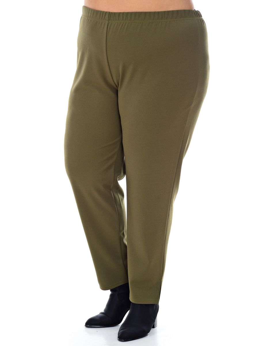 Брюки зауженные, 7/8, из крепа с эластаном, цвет хаки
