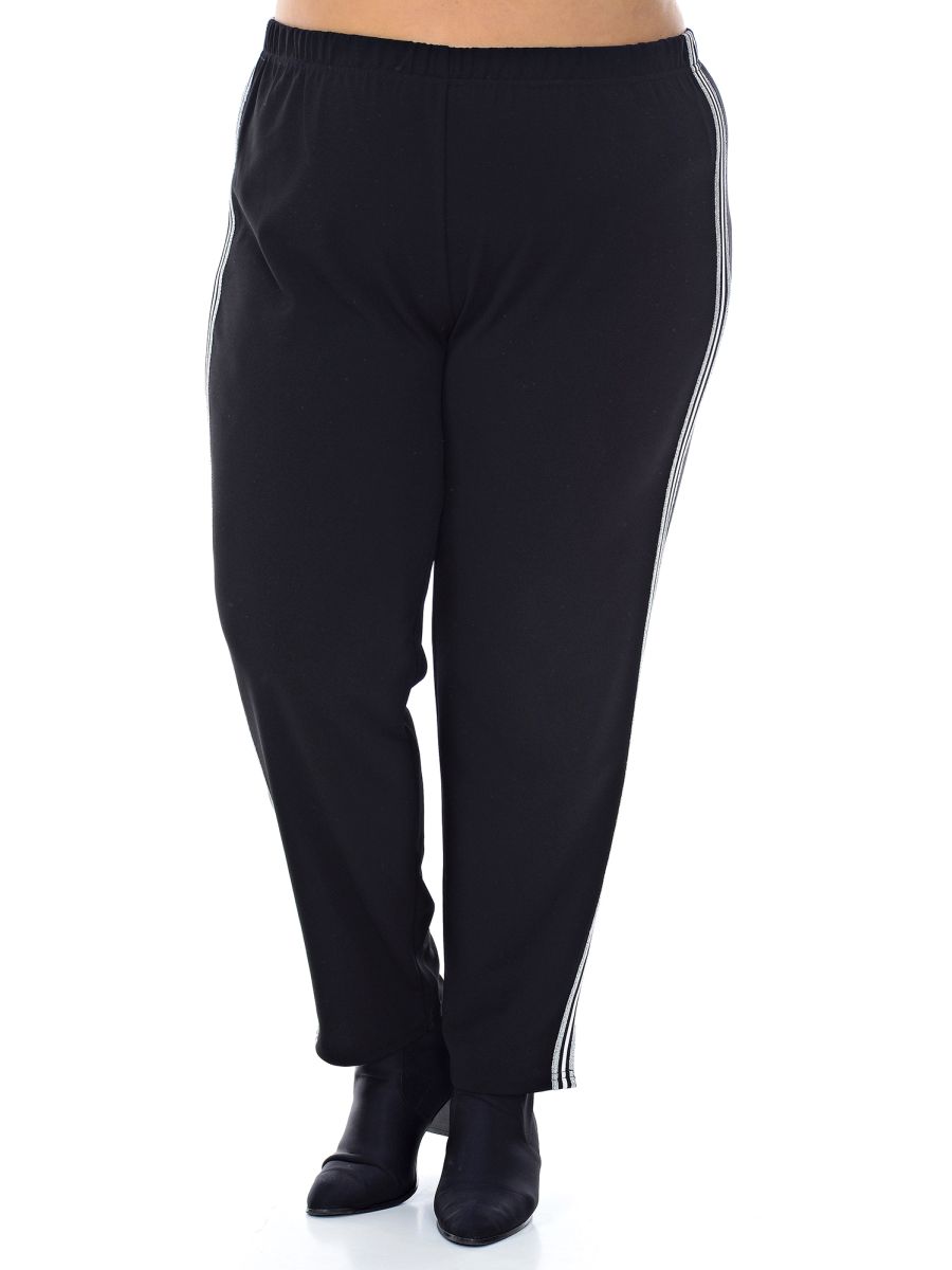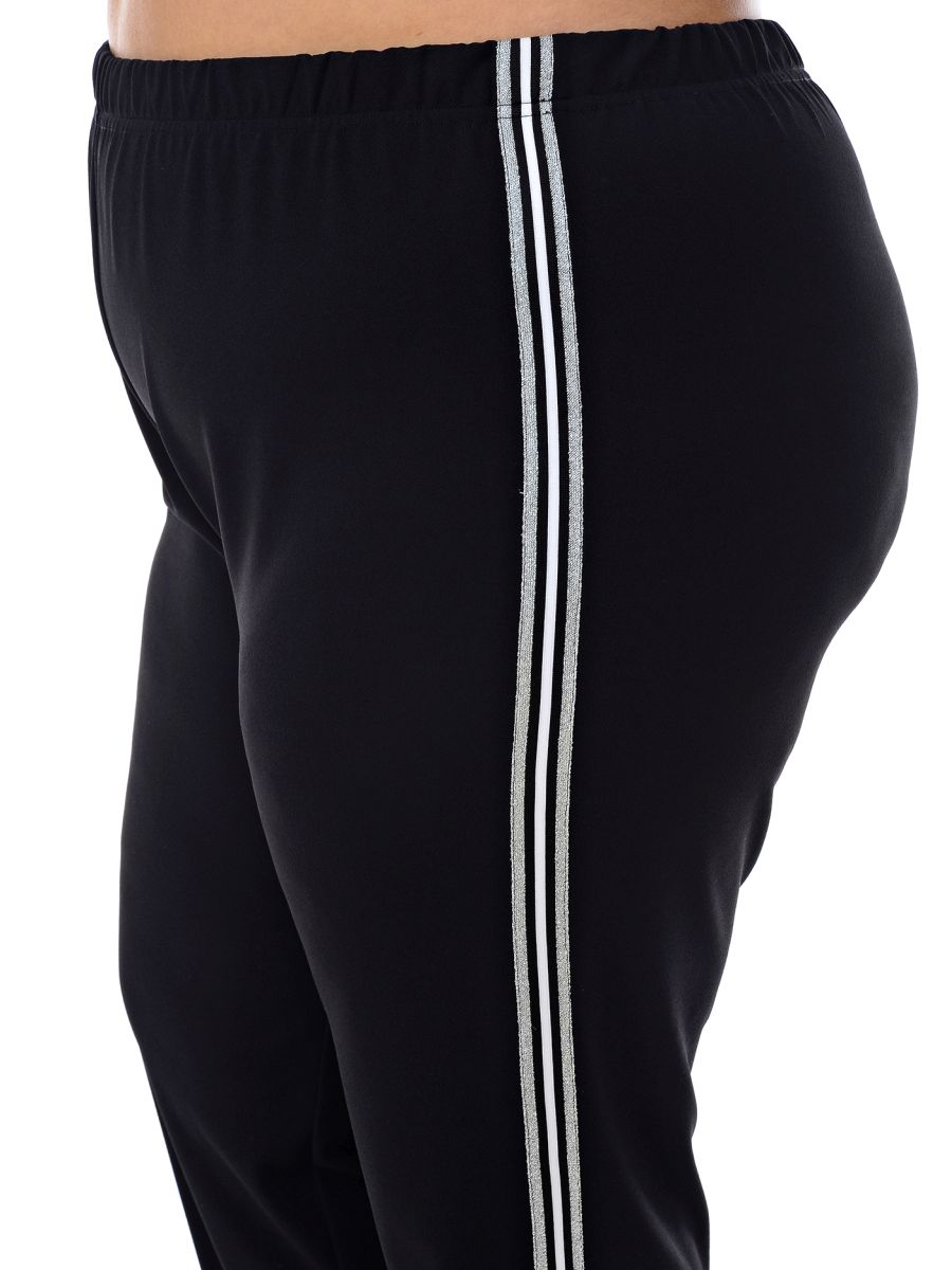 Брюки зауженные, 7/8, с лампасами, черные