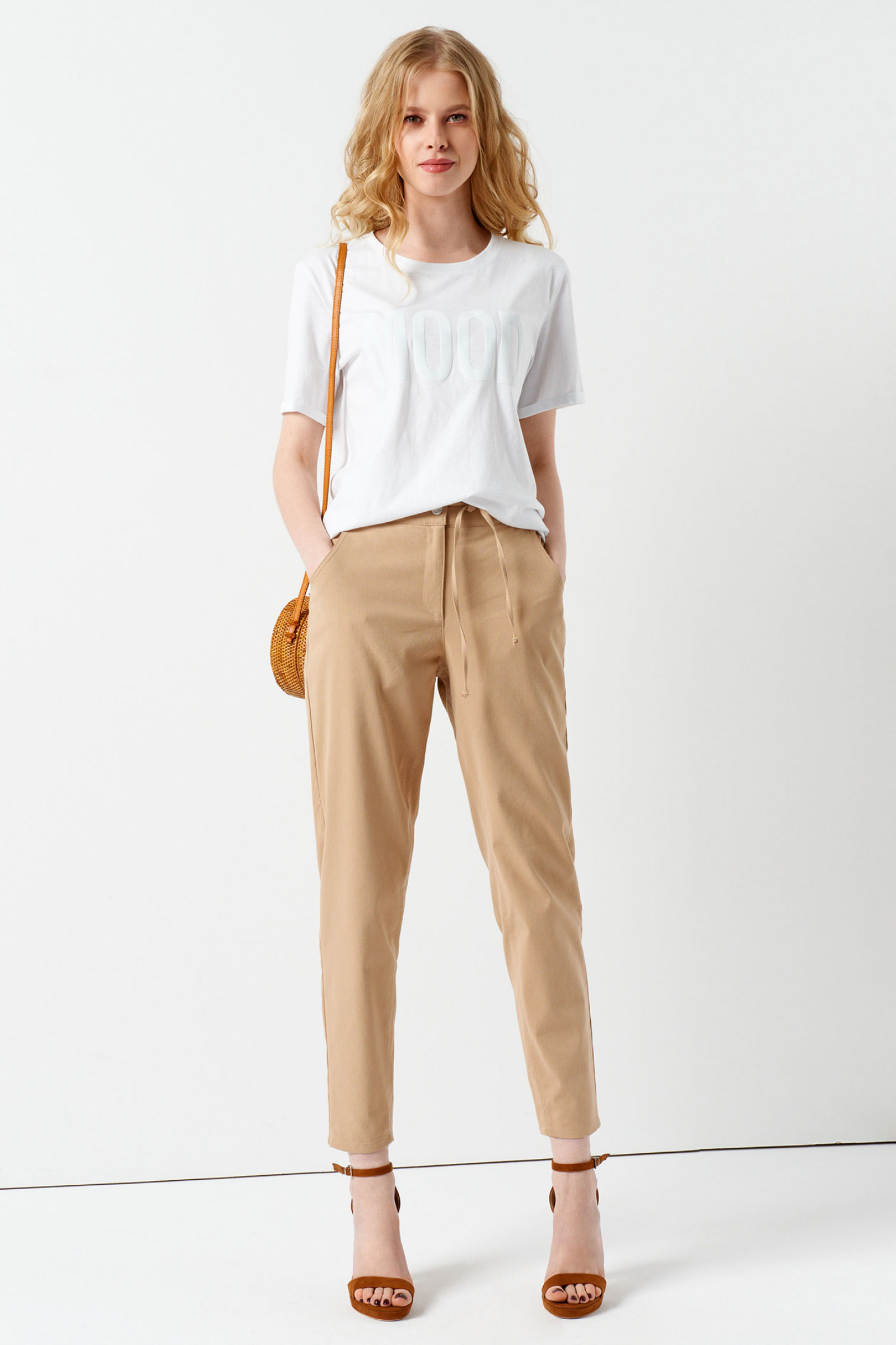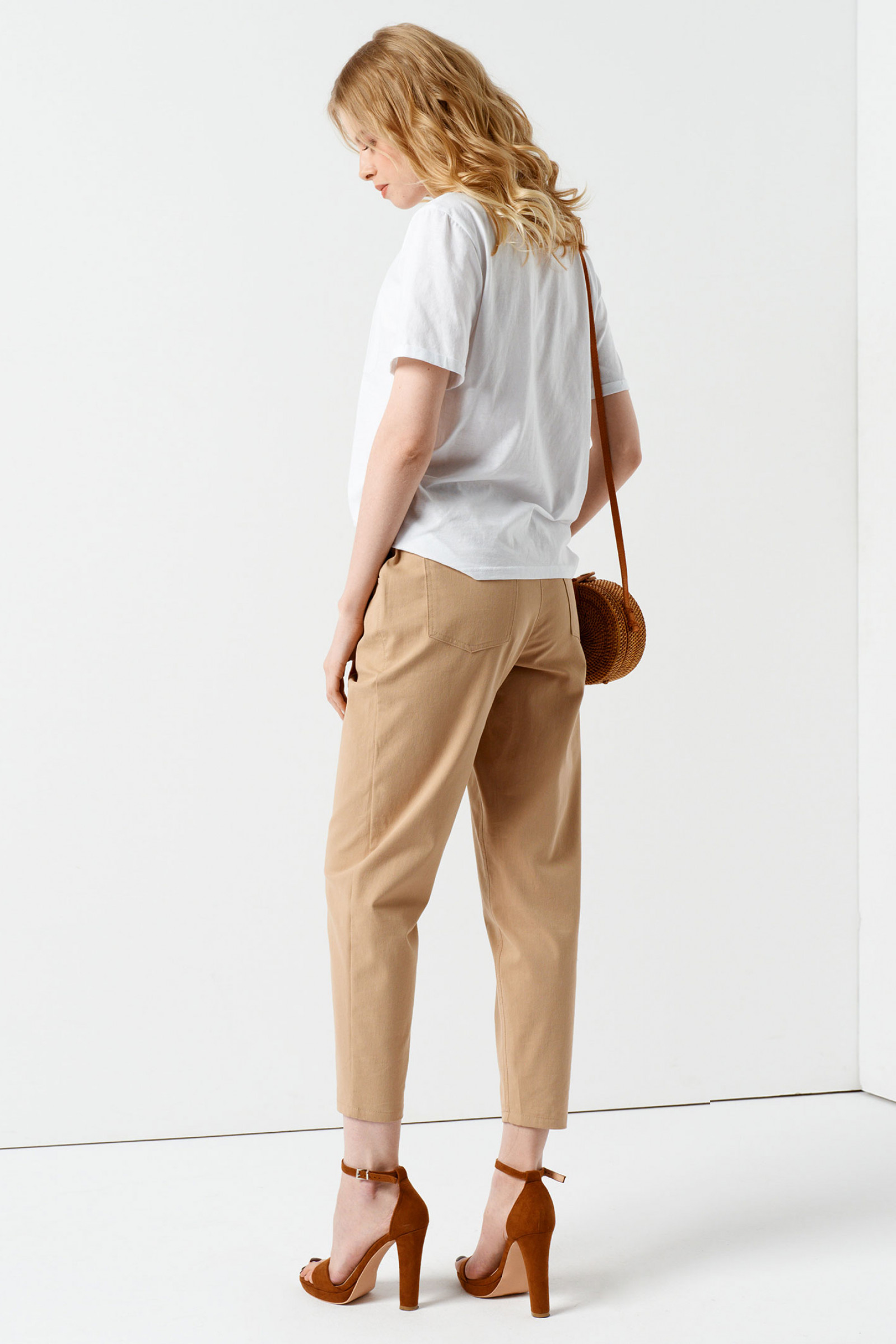 Хлопковые брюки casual в сочетании с футболками, блузами, топами помогут вам создавать эффектные повседневные образы. Модель отлично подойдет для прогулки по городу, похода в кино, на встречу с друзьями или свидание. Особый крой обеспечивает одежде превосходную посадку по фигуре. Короткие зауженные брюки застегиваются на застежку-молнию, прикрытую гульфиком, и пуговицу. Изделие дополнено глубокими прорезными карманами по боковым швам и шнурком на поясе из основной ткани. Для пошива используется качественный мягкий хлопковый джинс, приятный к телу. Покупайте недорогие модные женские брюки, чтобы пополнить базовый гардероб сезона весна-лето.