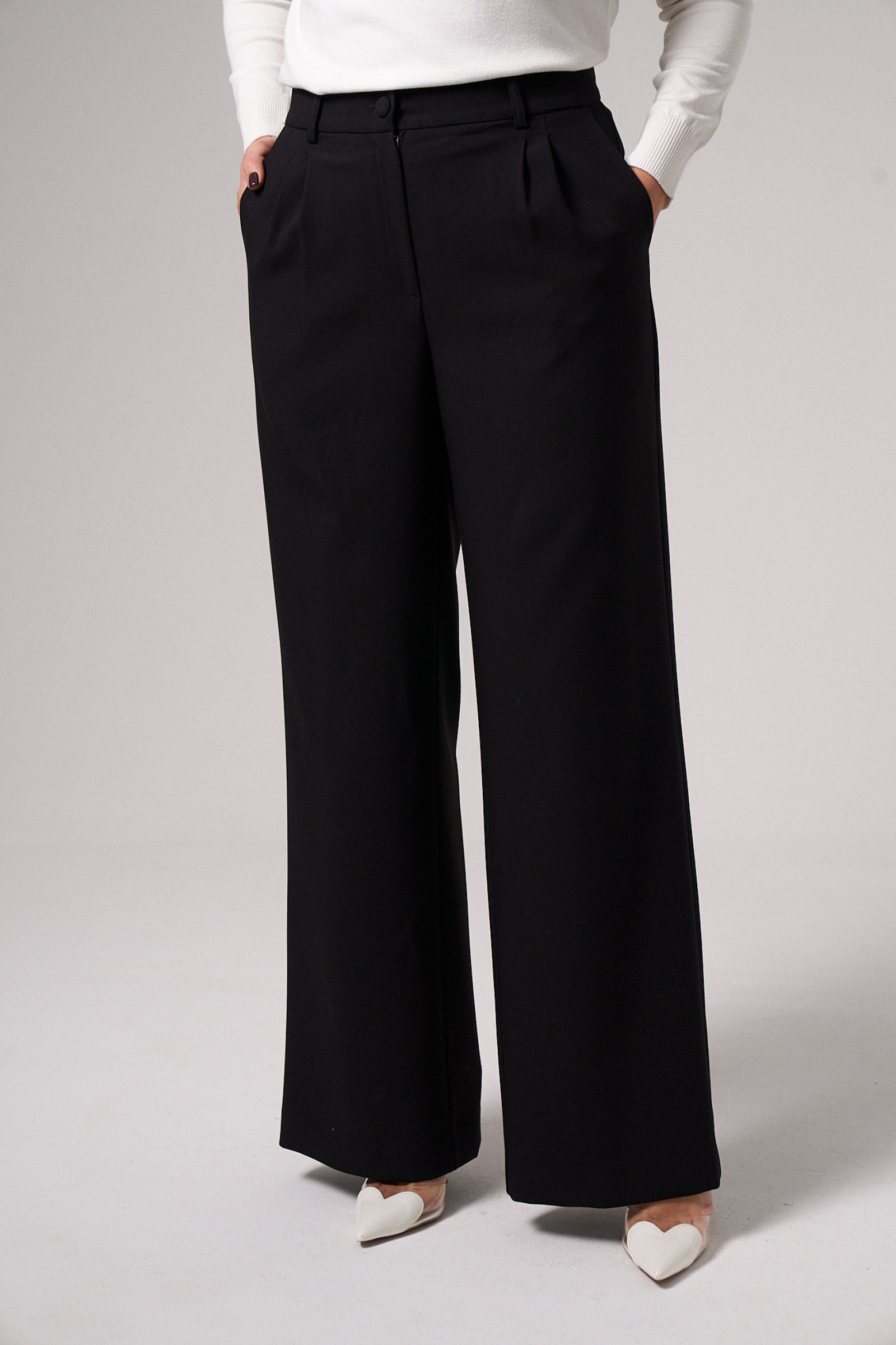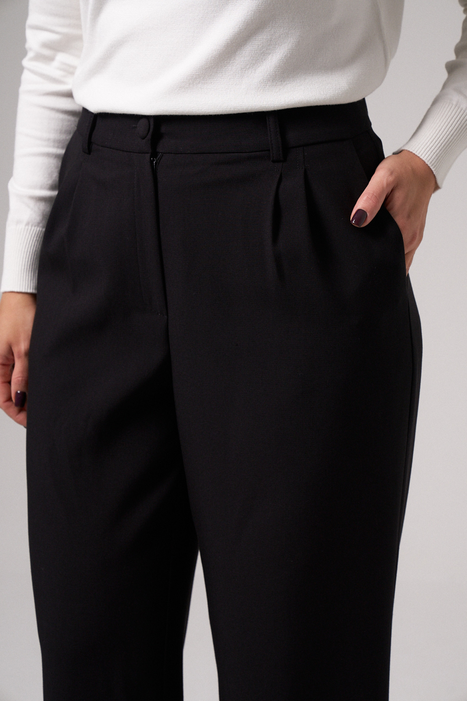 44 Брюки: Высота посадки - 31см, Длина брюк без пояса - 109.5см, Длина по внутреннему шву - 84см, Ширина брючин сверху - 67см, Обхват брюк по низу - 55см, Ширина по бедрам - 49см, Ширина по талии - 34.5см;