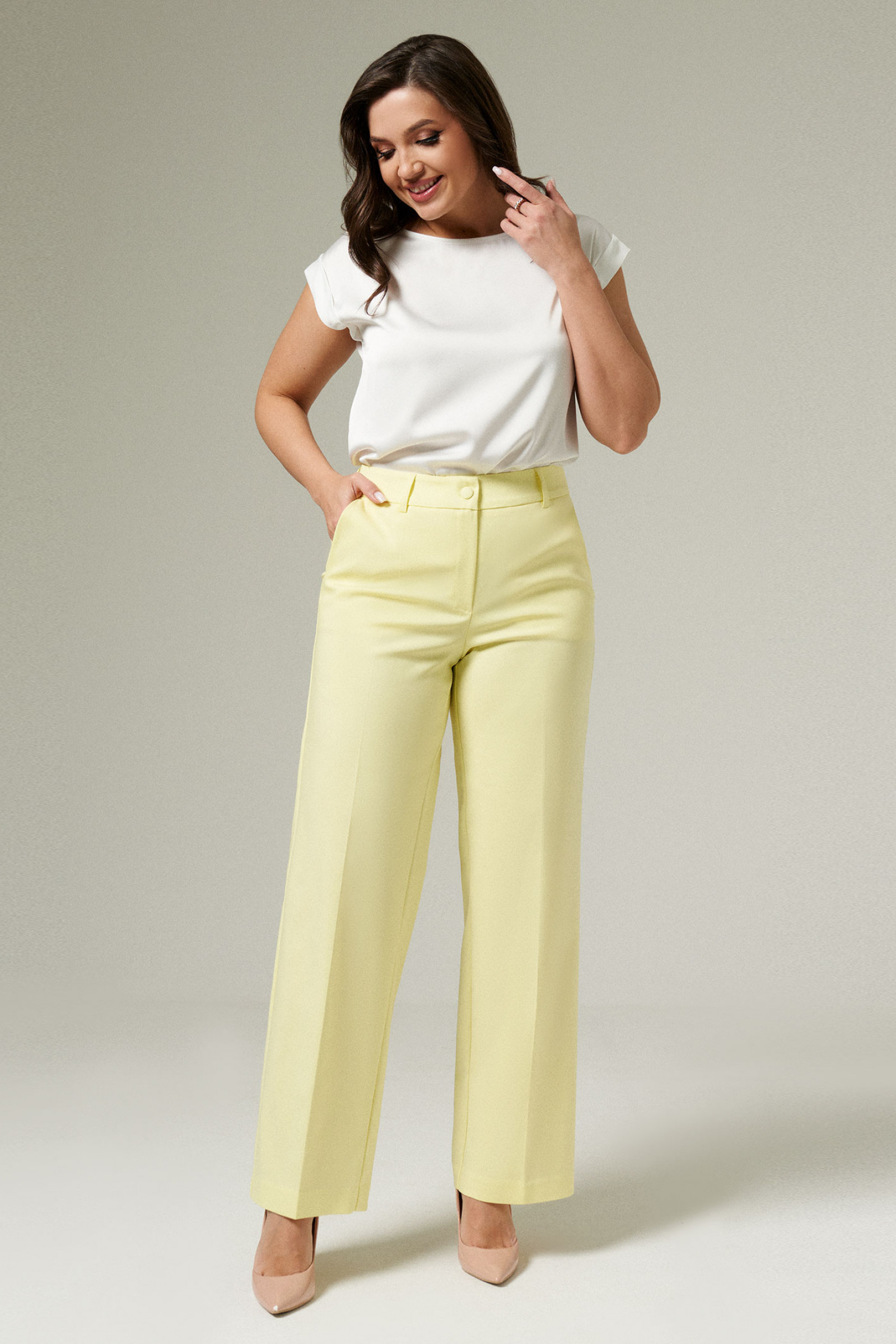 Классические брюки женские – универсальны, вы сможете носить их в офис, на встречи с друзьями, прогулки по городу, учебу. Они представляют собой безупречные сочетания с блузками, майками, топами, легкими джемперами, обувью на каблуке и плоской подошве. Модные женские брюки с высокой посадкой отлично смотрятся на любой фигуре. Длина штанин традиционная. Они не облегают ноги, скрывая их несовершенства. Пояс дополнен шлевками для ремня и петлей-пуговицей. Гульфик делает незаметной застежку-молнию. Изделие сшито из воздухопроницаемого хлопкового трикотажа. Если вы хотите пополнить свой гардероб универсальной вещью, то можете заказать летние брюки женские в размерах 42-50