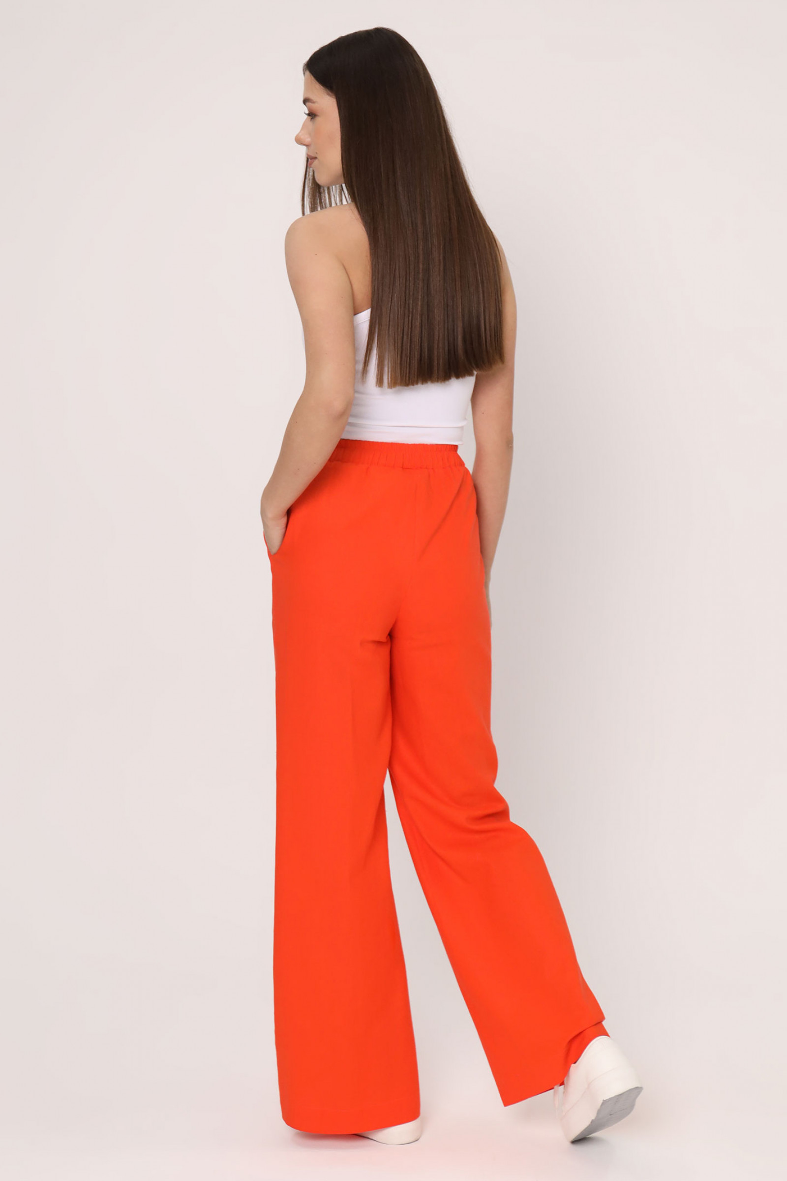 Прямые широкие брюки – удобная одежда, повседневной носки и особых случаев. Стильные брюки для прямые по силуэту. Пояс, дополненном резинкой, что очень удобно. В области боковых швов располагаются прорезные карманы. Отлично сочетается с блузками, футболками, топами, майками, жакетами. Данные брюки пошиты из льняной ткани. Льняная ткань обладает гигроскопичностью, воздухопроницаемостью и подойдёт для жарких дней. Заказывайте летние брюки больших размеров, чтобы пополнить свой сезонный гардероб практичной вещью.