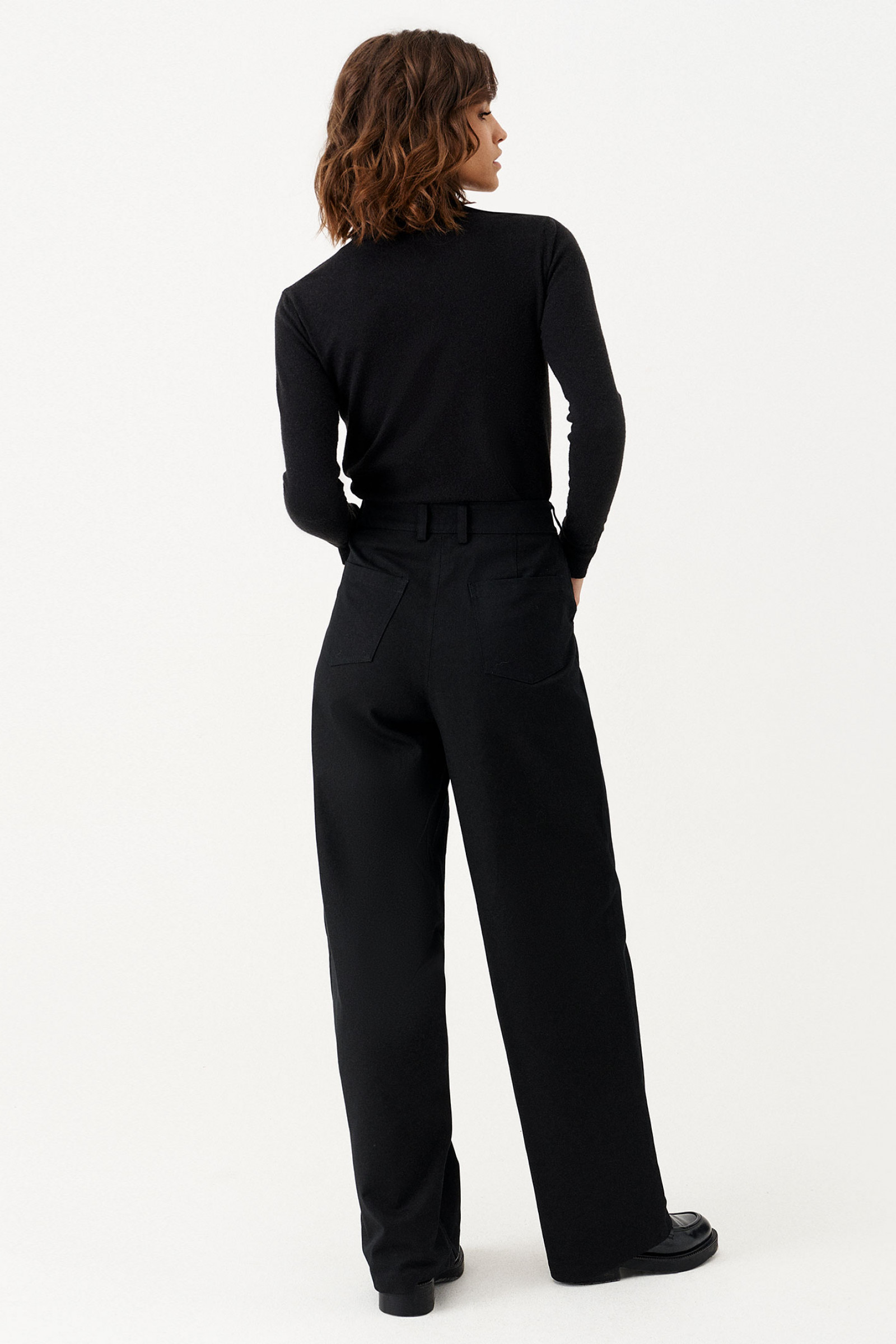 46 Брюки: Высота посадки - 28.5см, Длина брюк с поясом - 109см, Длина по внутреннему шву - 79см, Ширина брючин сверху - 72см, Обхват брюк по низу - 51см, Ширина по бедрам - 56см, Ширина по талии - 38см;