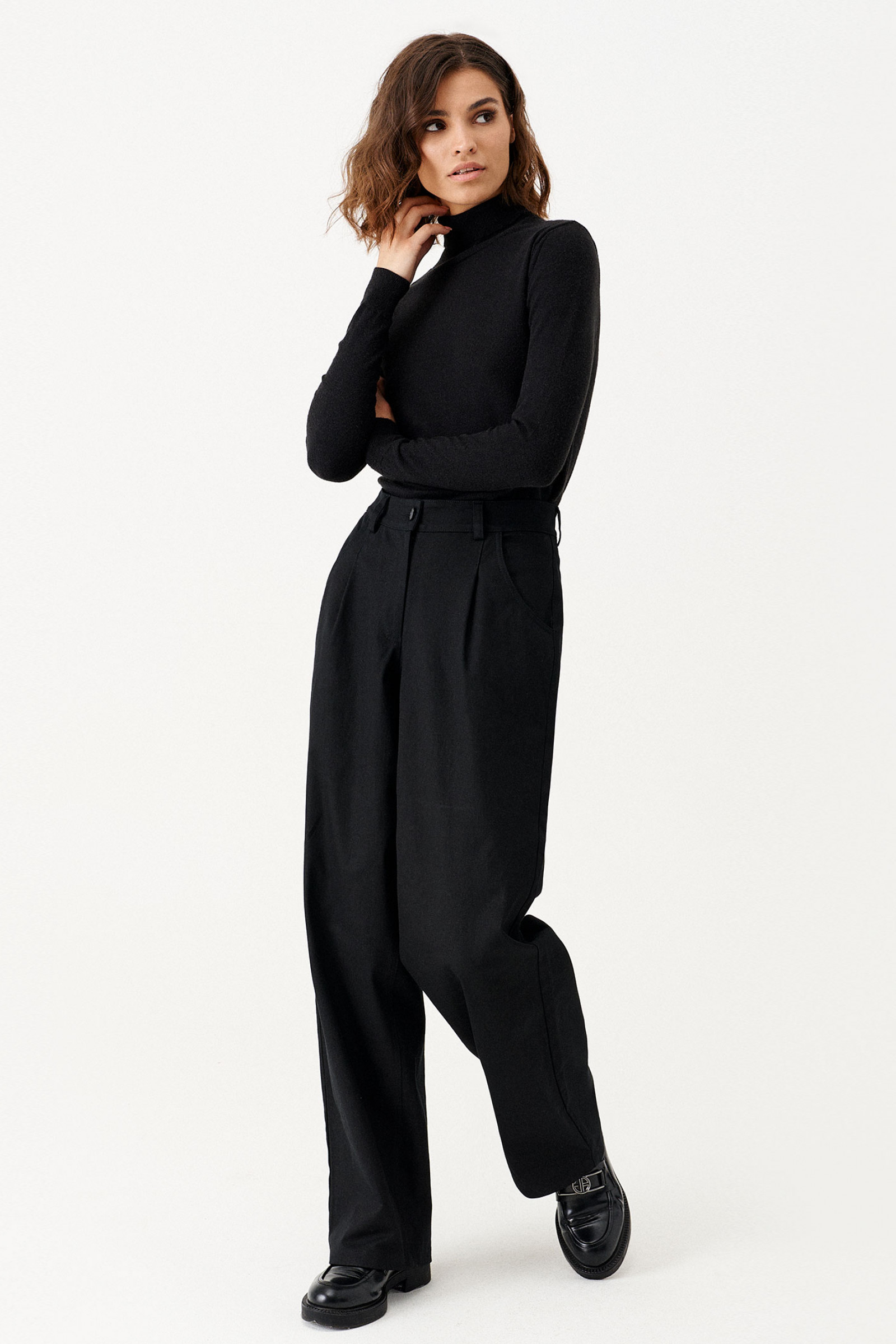 44 Брюки: Высота посадки - 28см, Длина брюк с поясом - 109см, Длина по внутреннему шву - 79см, Ширина брючин сверху - 70см, Обхват брюк по низу - 50см, Ширина по бедрам - 54см, Ширина по талии - 36см;