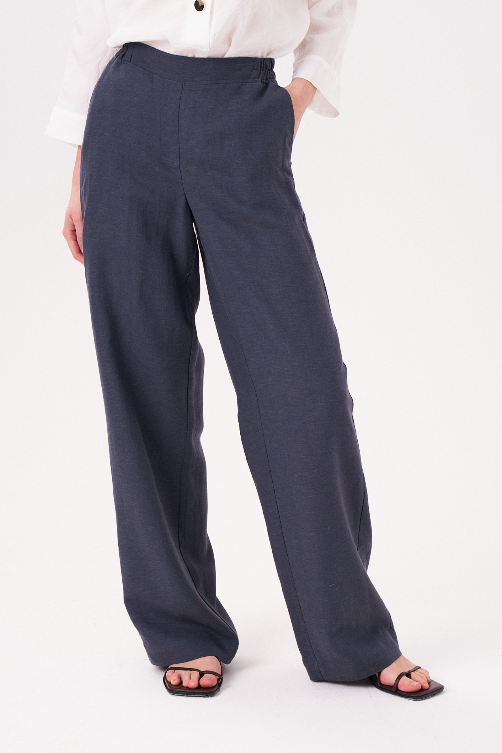 Прямые широкие брюки – удобная одежда, повседневной носки и особых случаев. Стильные брюки для прямые по силуэту. Пояс, дополненном резинкой, что очень удобно. В области боковых швов располагаются прорезные карманы. Отлично сочетается с блузками, футболками, топами, майками, жакетами. Данные брюки пошиты из льняной ткани. Льняная ткань обладает гигроскопичностью, воздухопроницаемостью и подойдёт для жарких дней. Заказывайте летние брюки больших размеров, чтобы пополнить свой сезонный гардероб практичной вещью.