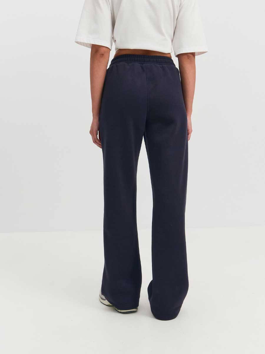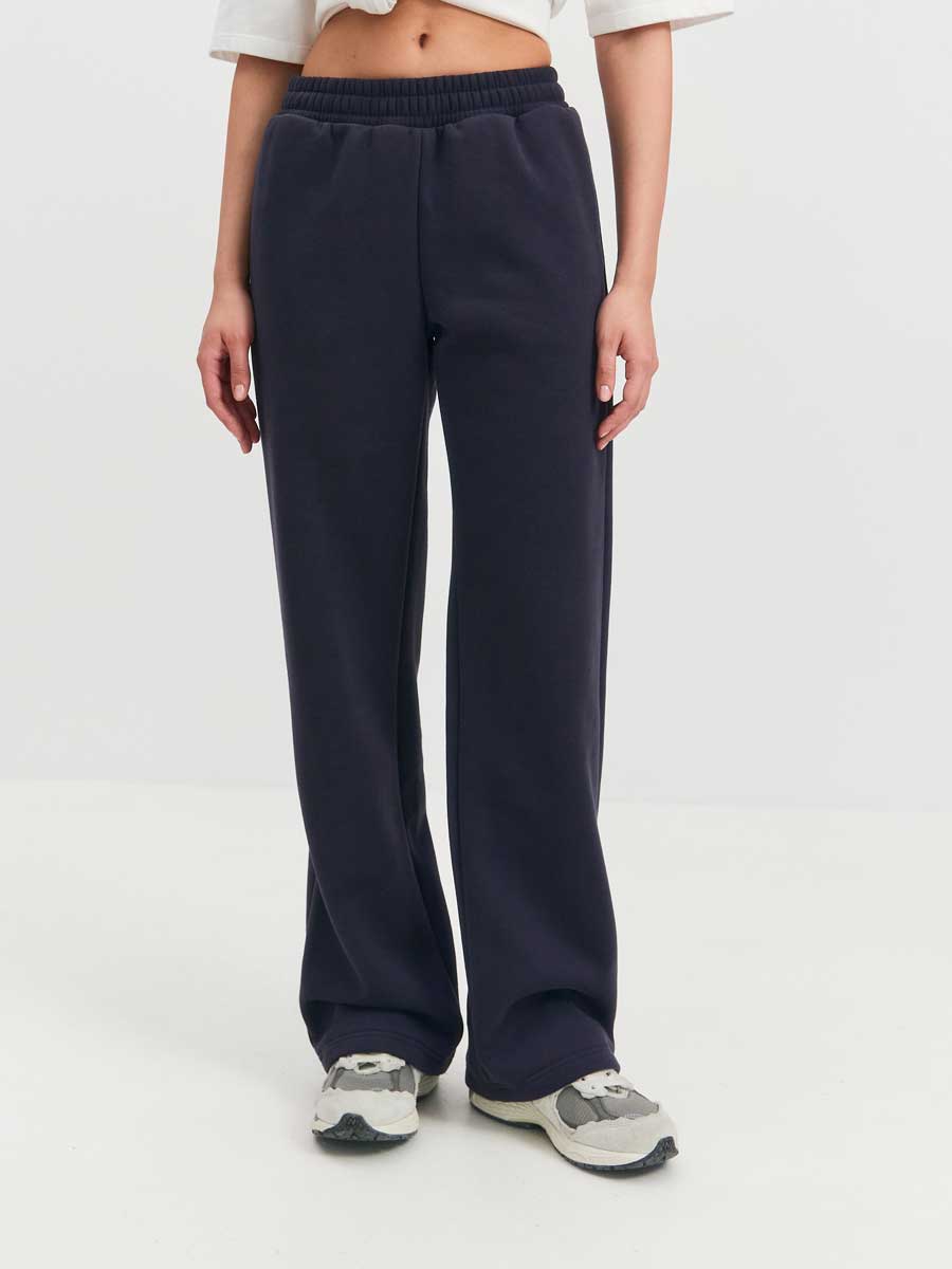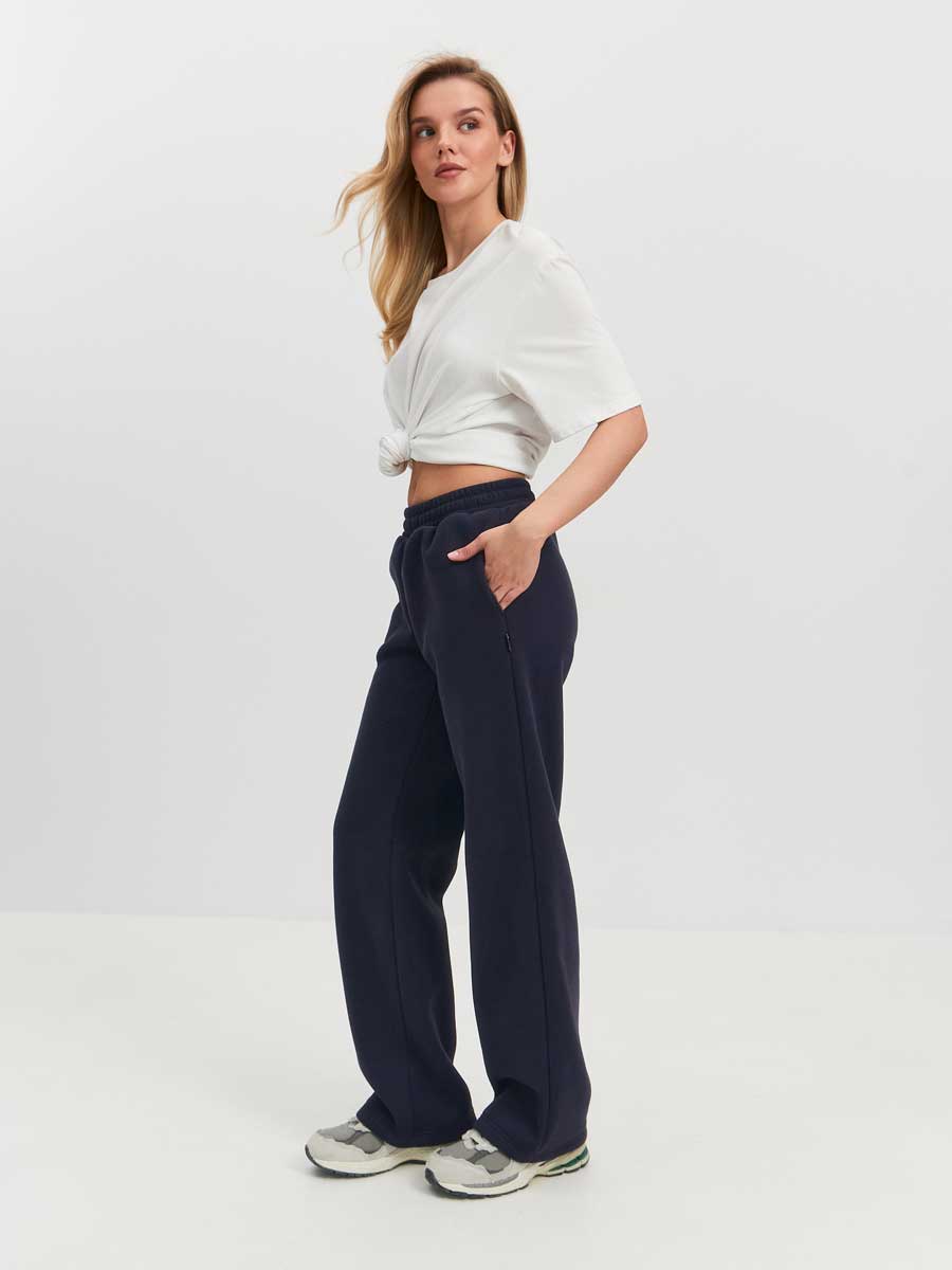 Женские брюки из футера 3-х нитка диагональ микро-начес с "эффектом велюра", с отрезным поясом, строчёным с эластичной тесьмой. С изнаночной стороны пояса петли, через которые продет шнур. Карманы в боковых швах.