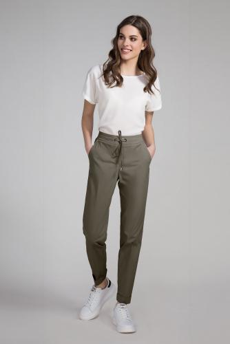 46 Брюки: Высота посадки - 31см, Длина брюк с поясом - 86см, Длина по шаговому шву - 57см, Ширина брючин сверху - 70см, Обхват брюк по низу - 53см, Ширина по бедрам - 55см, Ширина по поясу - 36см;