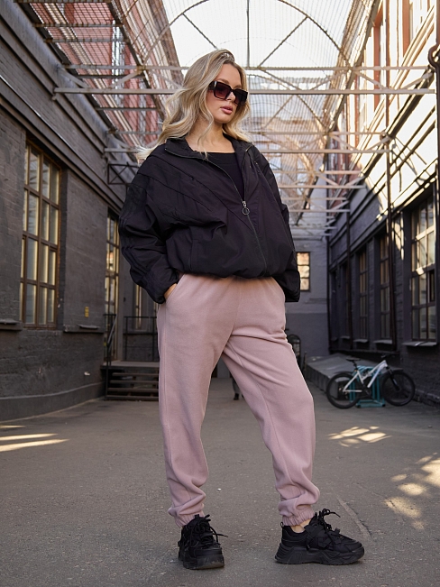 Брюки молодежные из трикотажного гладкокрашенного полотна «флис», длинные, на притачном поясе с эластичной тесьмой внутри и шнурком, продетым через две петли в центре пояса, с карманами в боковых швах и эластичной тесьмой по низу.