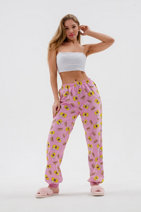 Брюки женские из футера на манжете / Розовый