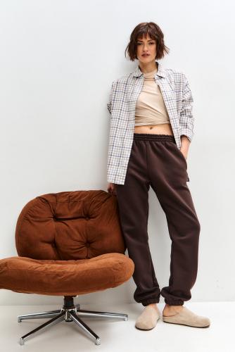 Брюки женские из футера трехнитка с начесом Сова шоколад