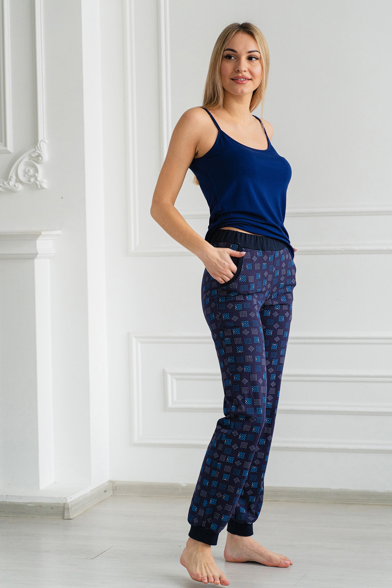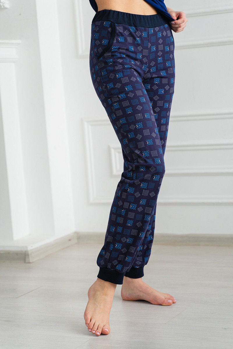 Брюки женские из кулирки на манжете темно-синий