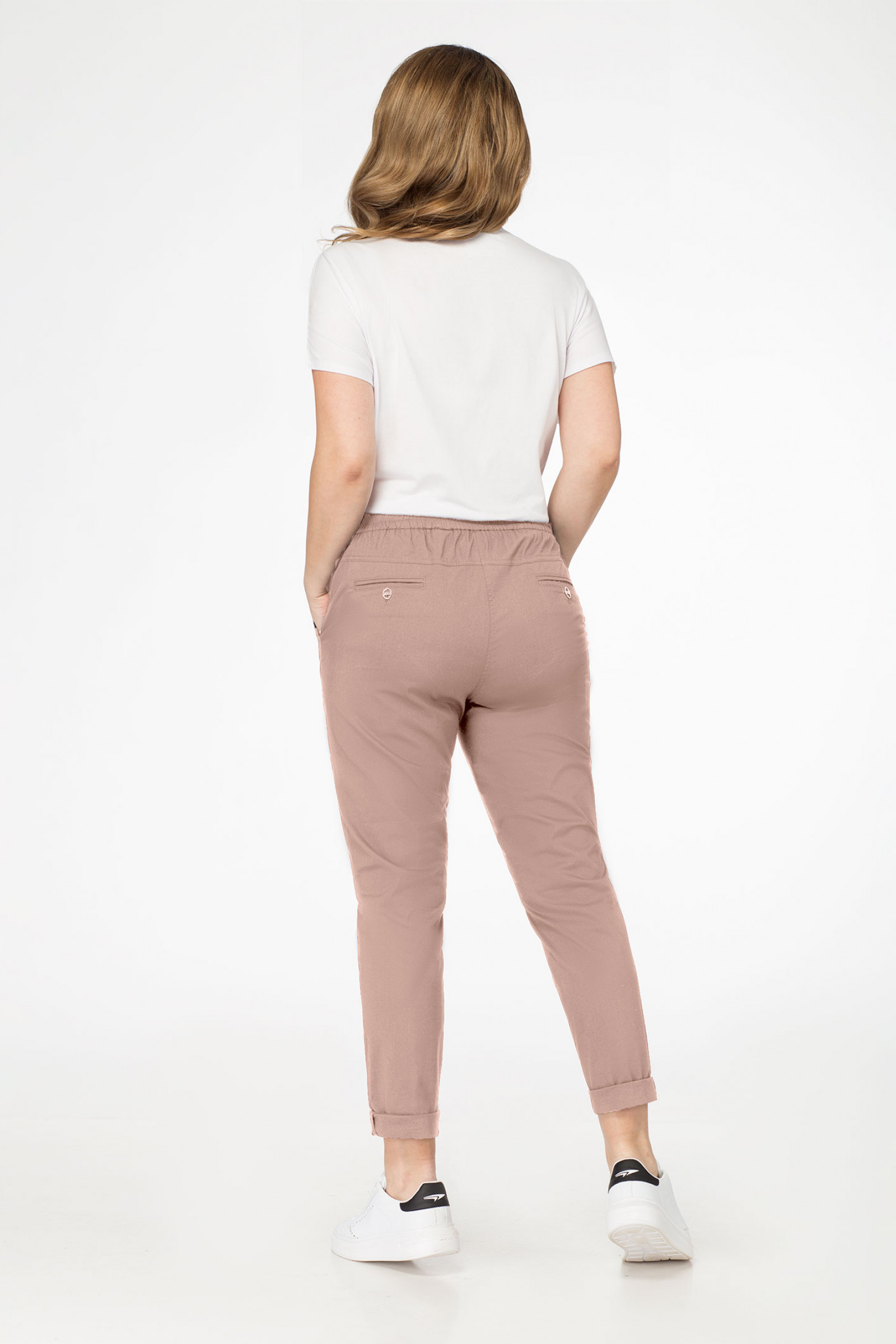 Женские брюки больших размеров станут вашим верным спутником на прогулке, в офисе, на вечеринке. Они хорошо сочетаются с футболками, блузами, рубашками, дарят свободу движений, выглядят стильно и модно. Брюки на резинке отличаются удобной посадкой. Дополнительно фиксируются шнурком, который позволяет регулировать объем в талии. Снизу повседневные укороченные брюки имеют отворот, слегка приоткрываю лодыжки. Будут уместно смотреться с кроссовками, кедами, босоножками, туфлями на танкетке. Вы можете купить зауженные брюки женские и пополнить свой летний гардероб универсальным изделием.