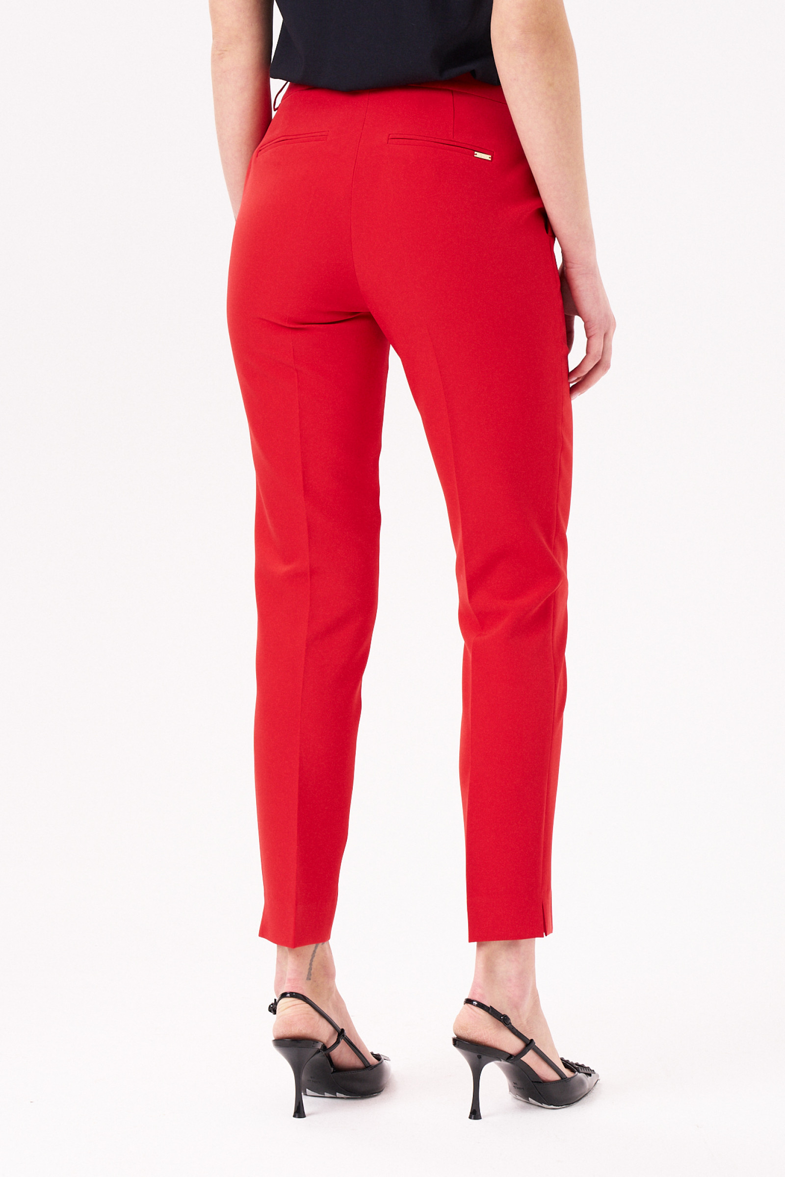 Женские брюки с высокой посадкой, поясом и наклонными карманами в боковом шве. Идеально ровные стрелки визуально удлиняют ноги. Брюки женские просты в уходе и удобны в носке. Плотная ткань хорошо держит форму, не теряет яркость после стирки.