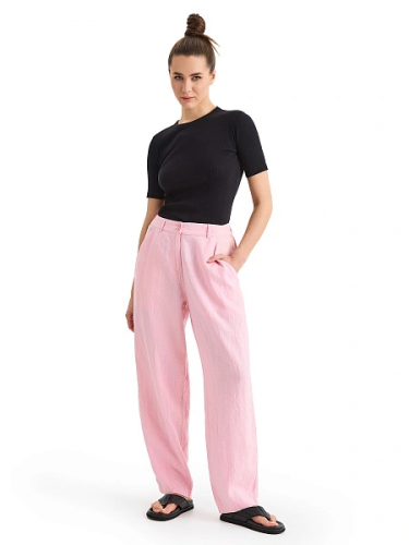 Брюки женские с карманами серии LINEN, цвет розовый