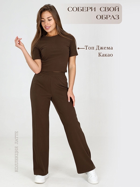 Брюки женские Сара из лапши-рибана зимняя. Имеют свободный крой. Они выглядят стильно и универсально, подходя как для повседневного, так и для более элегантного образа.