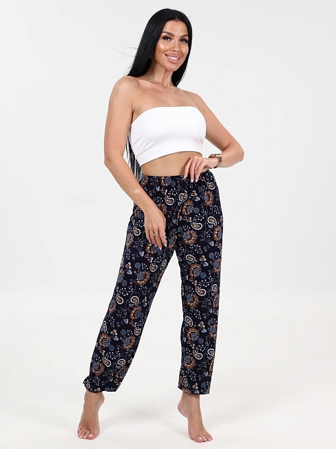 Женские брюки Султанки из ткани «масло» — идеальный выбор для создания стильных и комфортных летних образов. Мягкая и приятная на ощупь ткань обеспечивает свободу движений и комфорт в течение всего дня, а универсальный крой позволяет сочетать брюки с различными верхами.