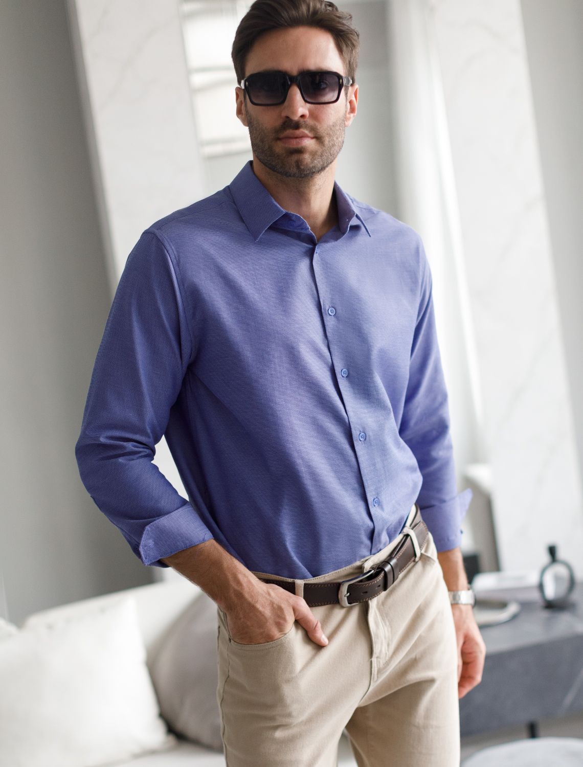 Рост 190, бюст 108, талия 87, бедра 104 Рубашка выполнена из премиального хлопка с добавлением ПЭ. Рельефный материал напоминает фактуру трикотажа пике. Изделие дополнено контрастными внутренними элементами на воротнике. Комфортно сидит по фигуре, не ограничивая движений. Подходит как для строгих мероприятий, так и для повседневных образов с джинсами.
