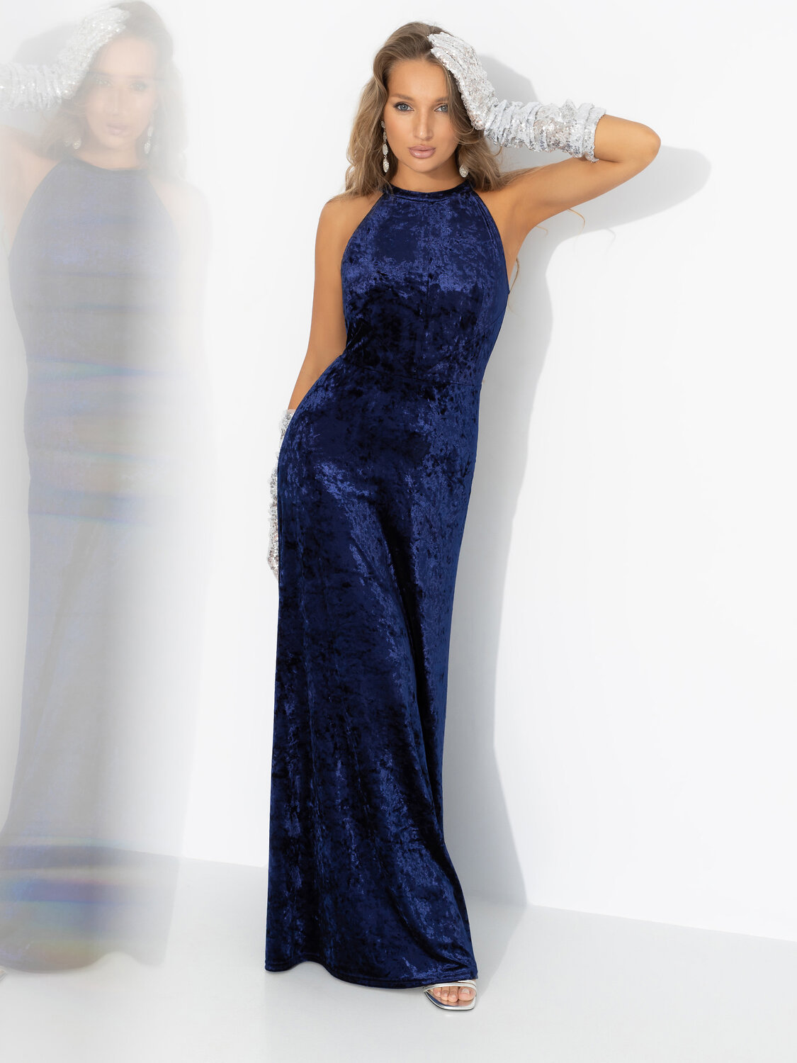 Для настоящей королевы новогодней ночи! Глубокий сапфир, благородный бархат и женственный силуэт – кажется, все желания уже осуществились. Платье макси из мягкого бархата насыщенного синего оттенка. Комфортная посадка, платье красиво драпируется, подчеркивает фигуру. Разрез на спинке – особый акцент. Уже видим фото с новогодней ночи в рамочке у твоей кровати. И понимаем: не любоваться невозможно.