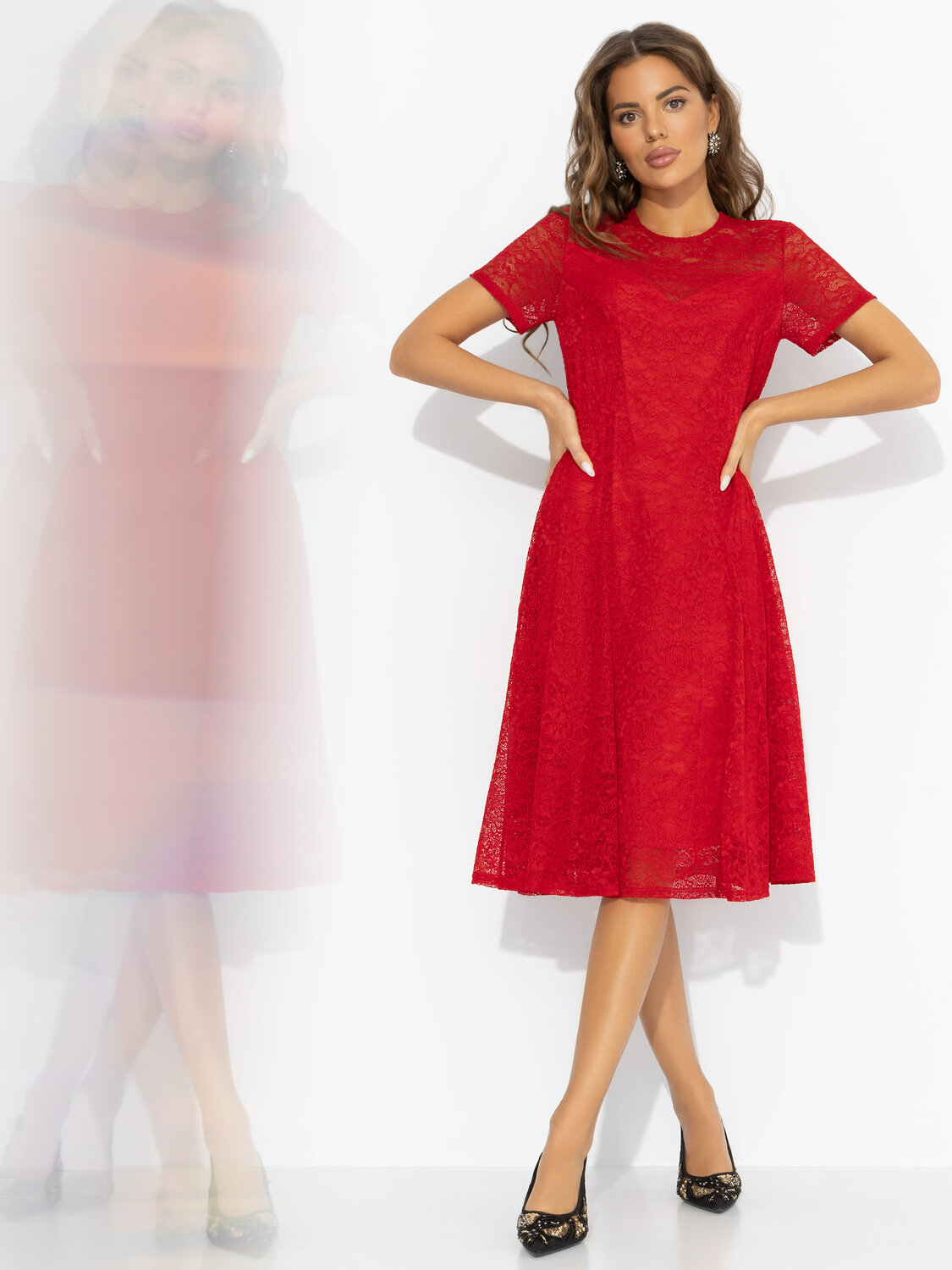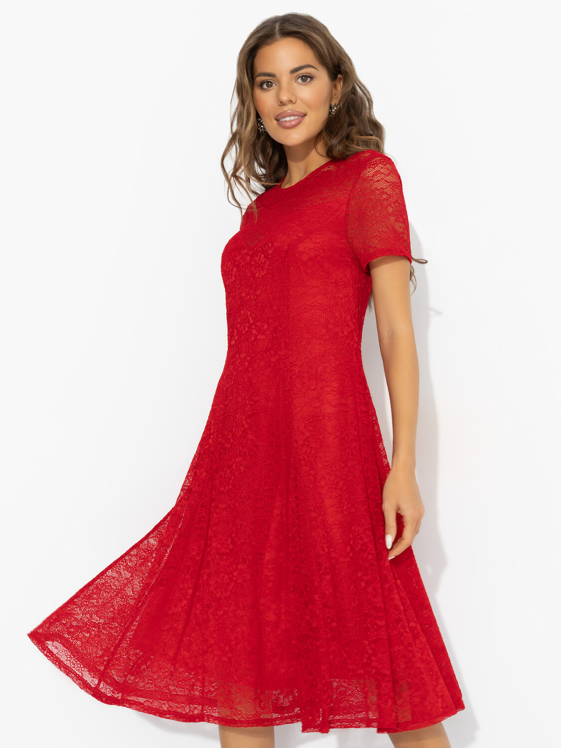 Романтика тоже может быть яркой. Алое кружевное платье отвечает за испанские страсти – вас поймут и без перевода. Один взгляд, и вы уже в круговороте ритмичного танго. Платье миди из стрейч-кружева с подкладкой из мягкого трикотажа подчёркивает фигуру, оставаясь максимально комфортным. Лёгкий клёш и полупрозрачный верх создают эффект вихря эмоций. Выбирай это платье для свиданий, торжеств и моментов, когда хочется добавить огня в собственную историю. Подойдет на любой тип фигуры.