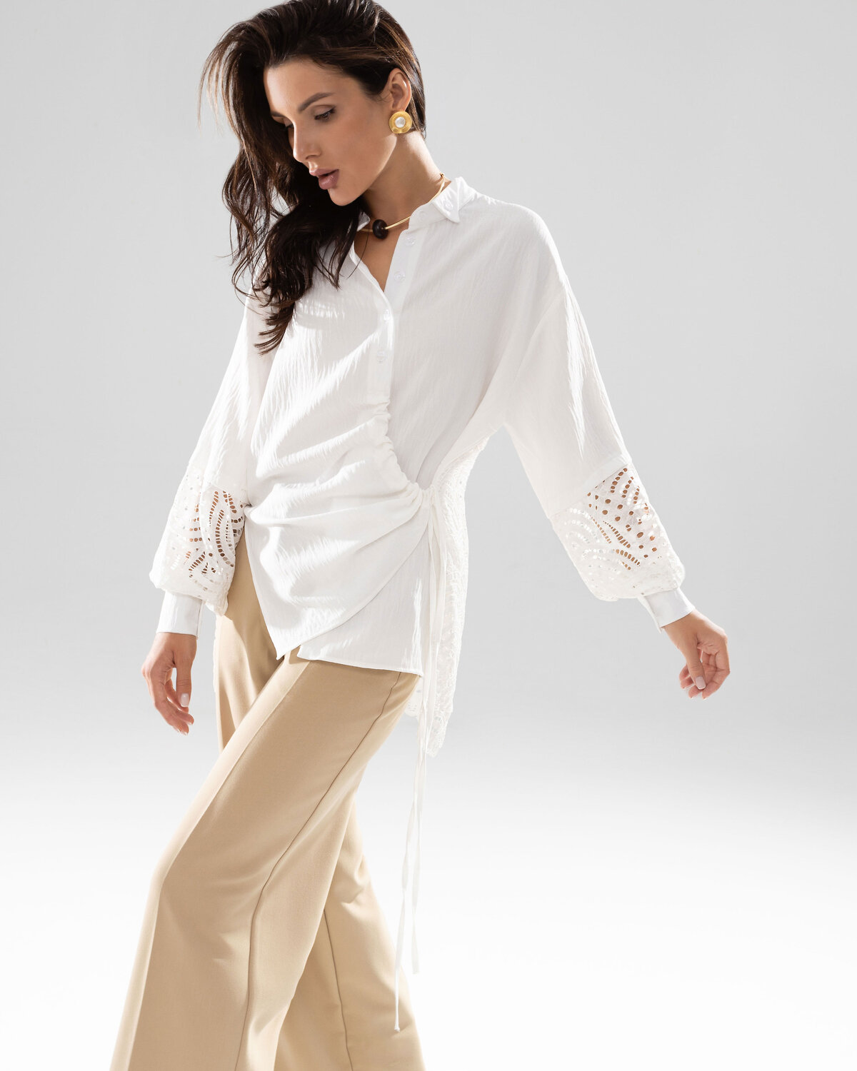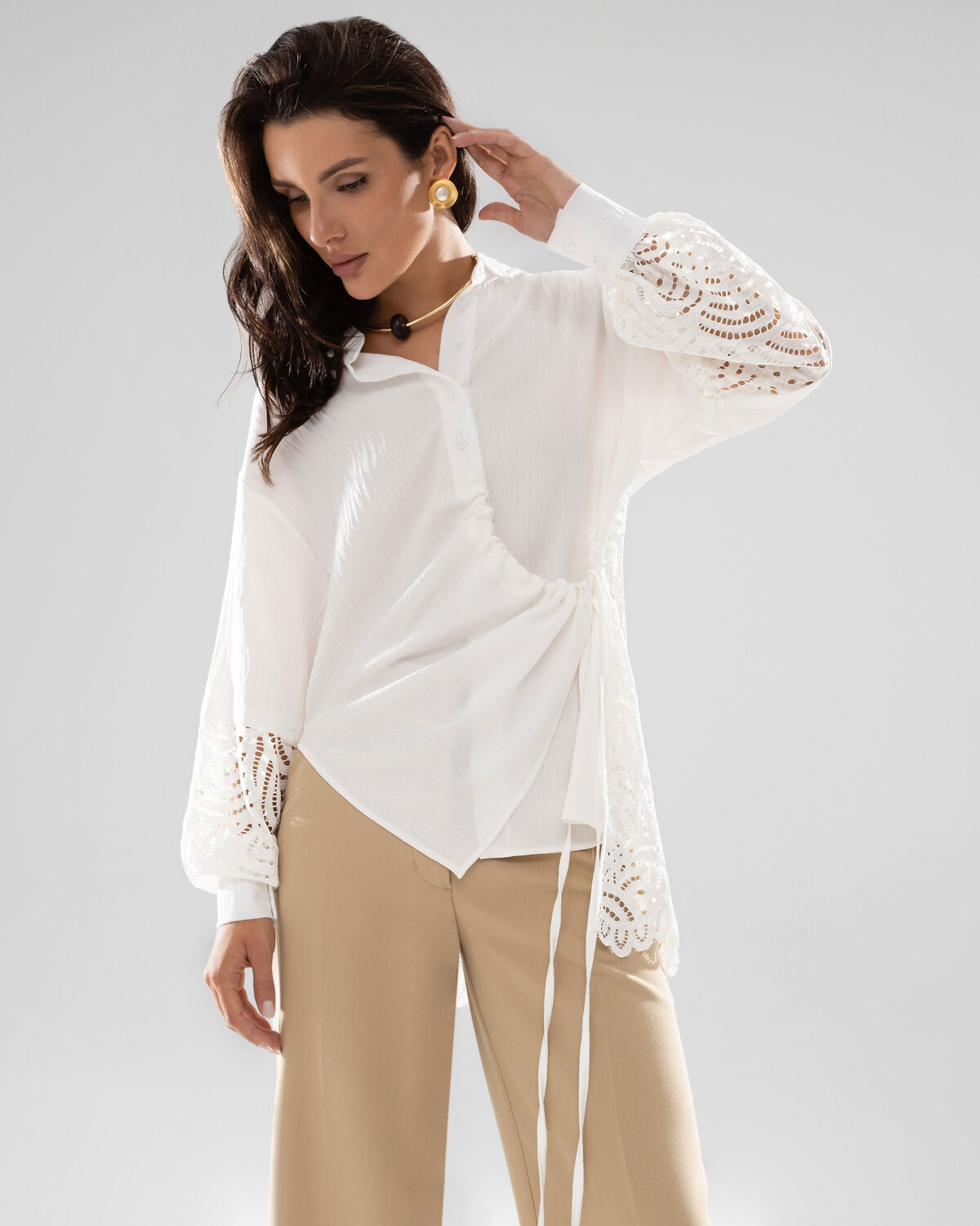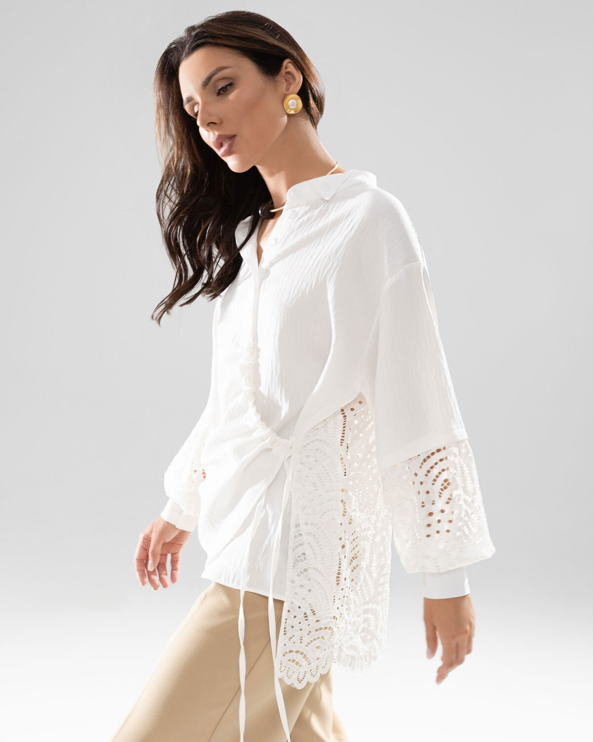 Ткань: блузочная ткань «жатка», кружево
