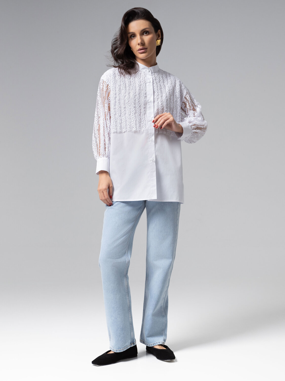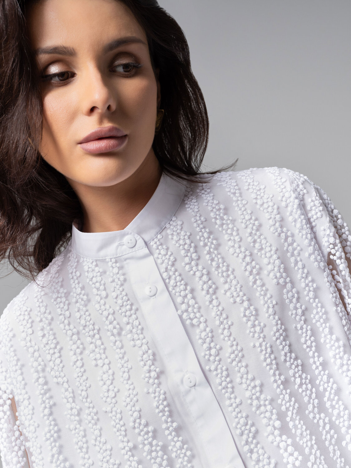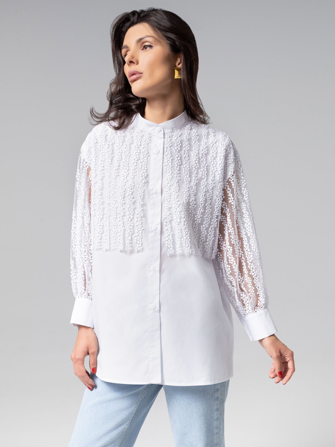 Ткань: Рубашечная ткань поплин "тиси", вышивка на сетке