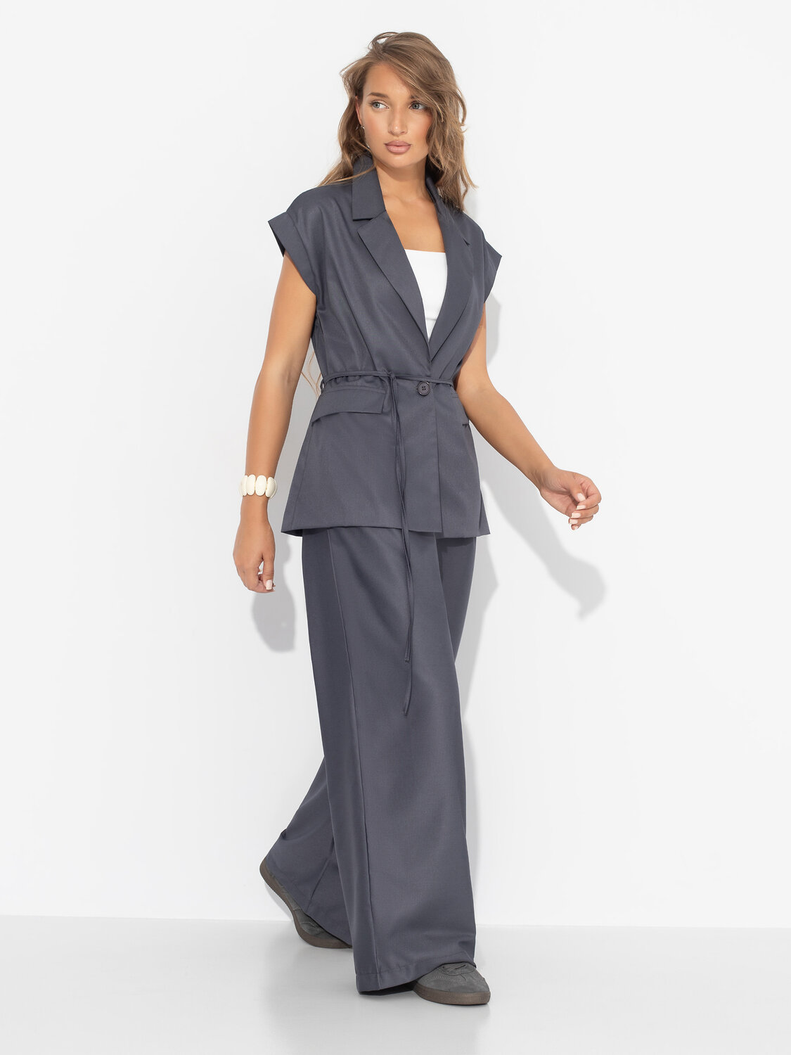 Из clean girl в бизнес-леди за пару секунд. Жилет ЧАРУТТИ в глубоком сером цвете преобразит тебя и подарит окружающим уверенность в твоём всемогуществе. Решение любых вопросов в кратчайшие сроки – это к тебе и к ЧАРУТТИ. Жилет удобренный с лацканами. Имитация карманов. Изделие застегивается на пуговицу в тон материала. Спущенная линия плеча, отвороты прошиты. Жилет можно носить как второй слой или в качестве самостоятельного предмета гардероба.