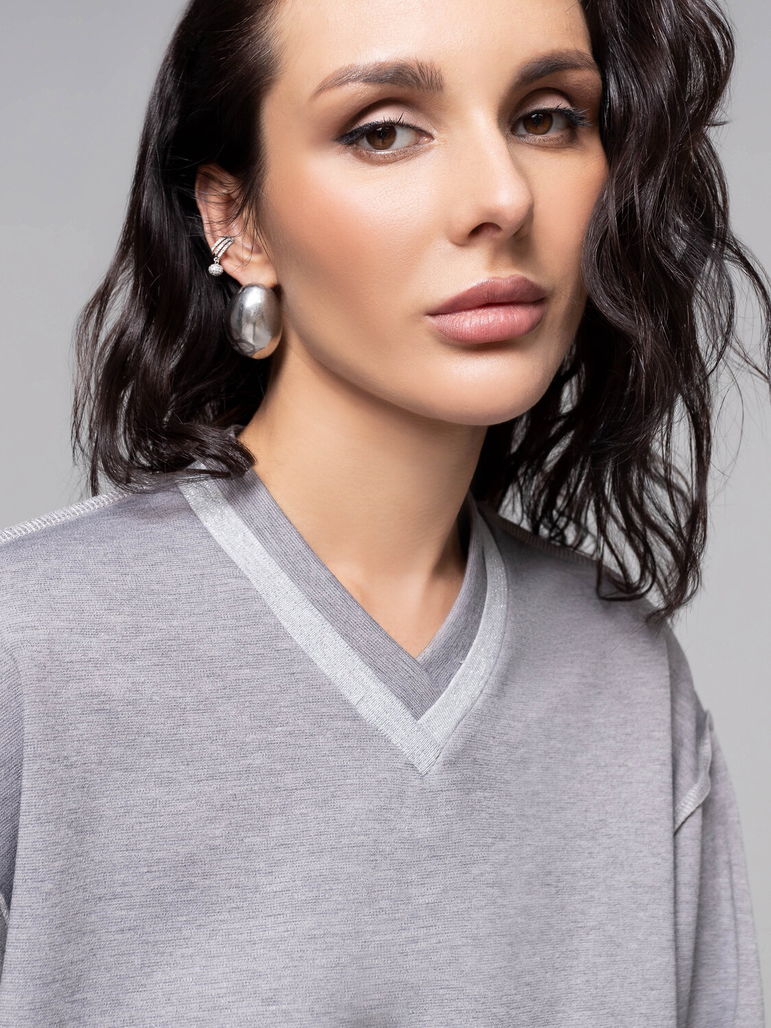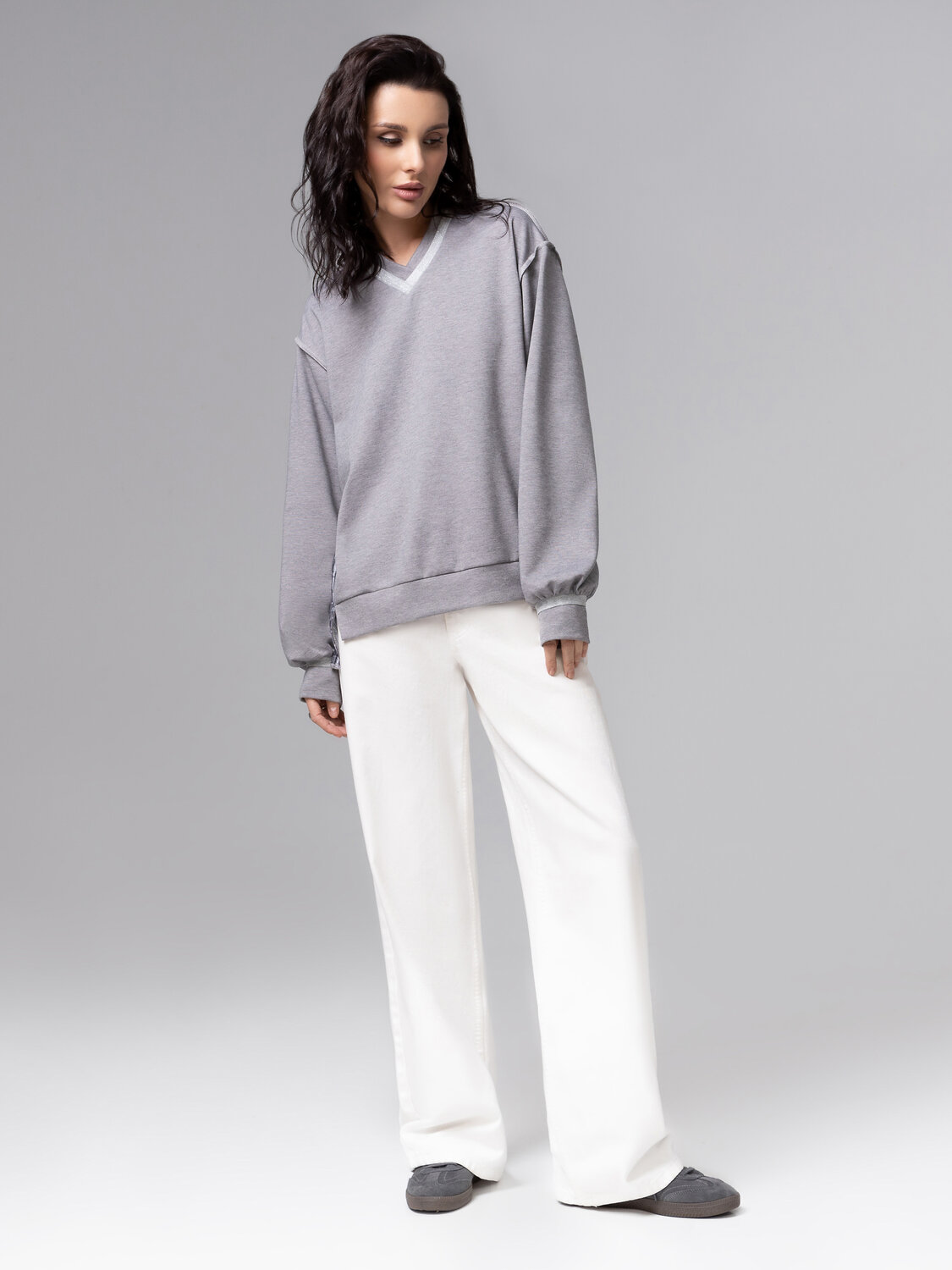 Минимум цвета, максимум характера. Серый свитшот со швами наружу доказывает: уверенность не нуждается в украшениях. Всё просто – «Успех в руках». Свитшот ЧАРУТТИ олицетворяет современную интерпретацию непринужденной элегантности. Его стильный крой, сочетающий объемность с четко выверенными пропорциями, обеспечивает идеальную посадку на любую фигуру. Акцентный крой спинки изделия из контрастной ткани-плиссе.
