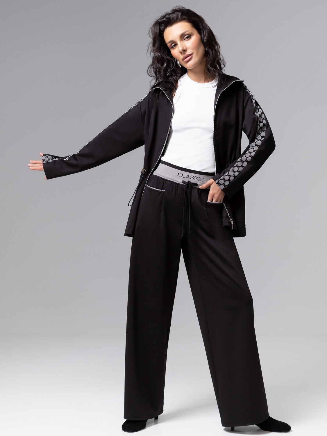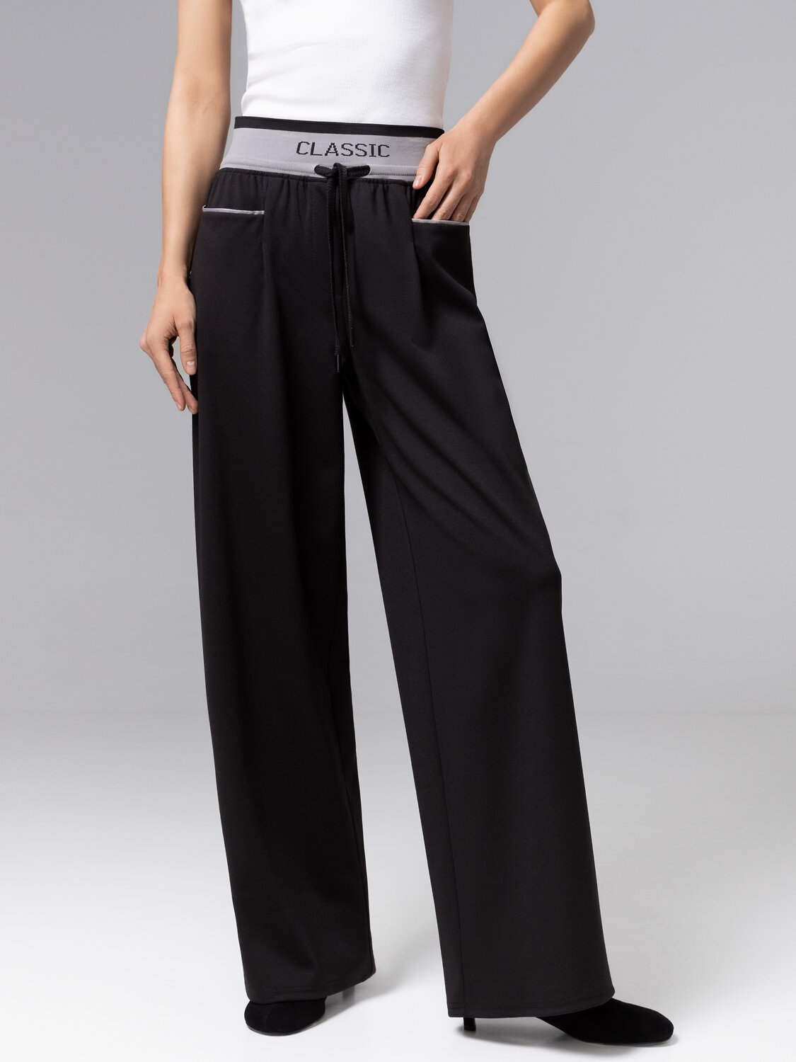 Они подчёркивают независимость, элегантность и умение быть разной: строгой, смелой, женственной. Брюки коллекции PREMIUM выглядят так, будто у них есть собственный менеджер по стилю. Широкая трикотажная резинка на поясе обеспечивает максимальный комфорт, одновременно добавляя современный акцент и сохраняя безупречную посадку. Изделие с карманами.