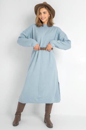 Воротник-стойка защитит от прохладного ветра. Благодаря плотной вязке и акрилу в составе трикотажное платье для женщин не растягивается и сохраняет форму при частых стирках.