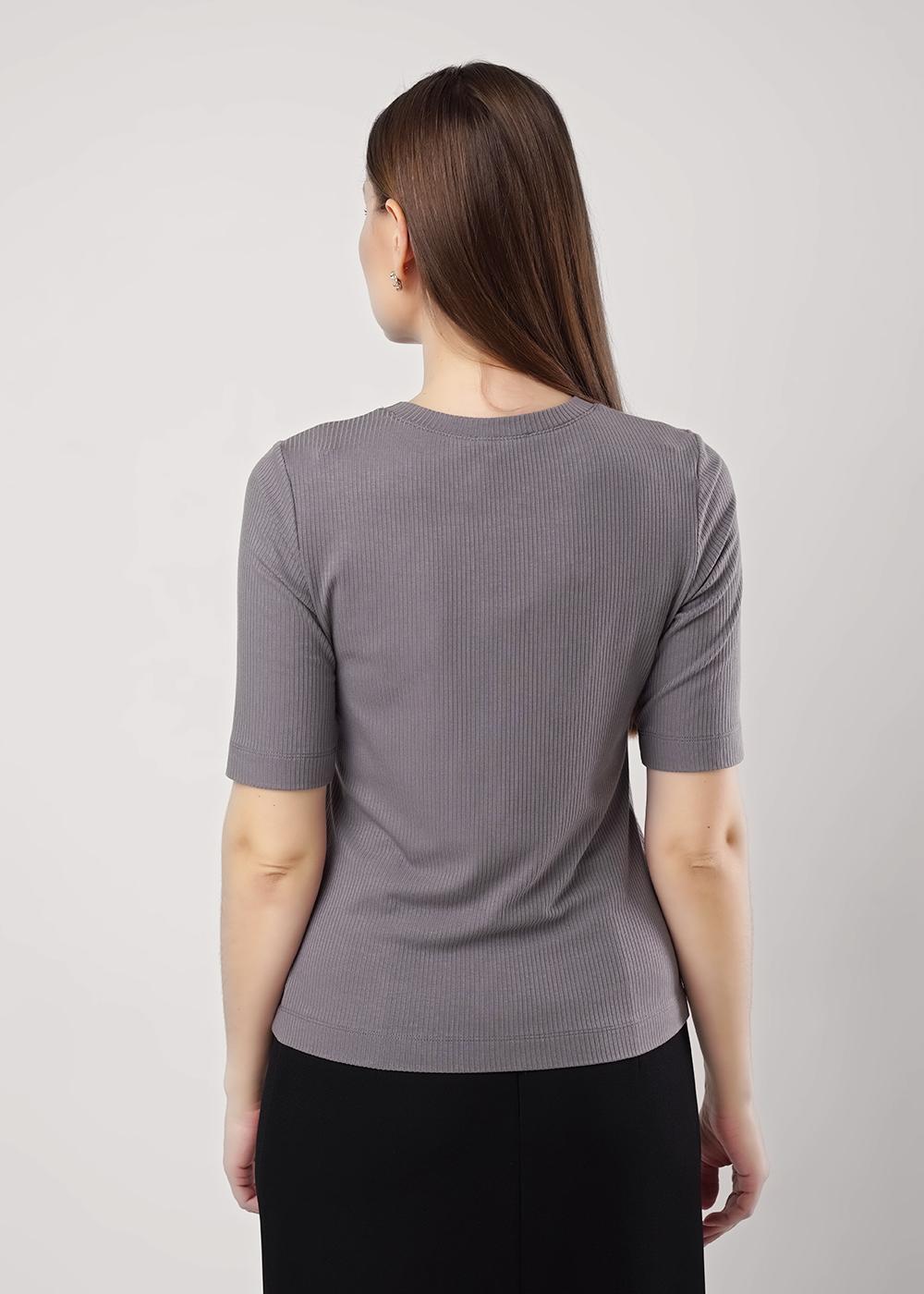Футболка из трикотажного полотна кашкорсе, прямого кроя. Короткий втачной рукав. Округлая горловина с обтачкой.