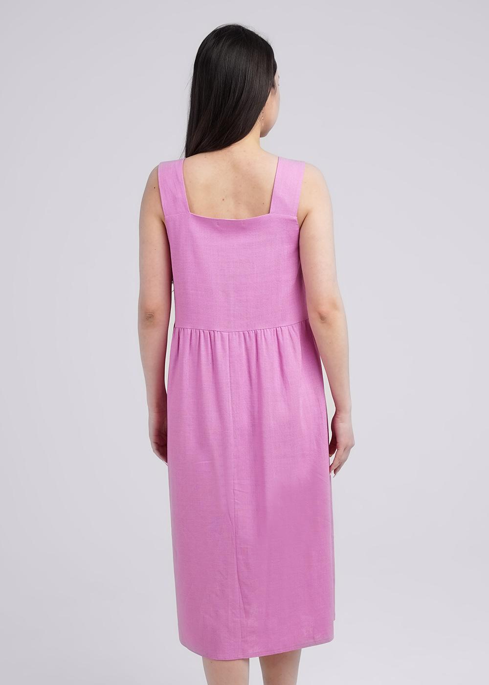 Сарафан из тканого полотна лен с вискозой,свободного кроя отрезной под линией груди со сборкой. Широкие бретели, квадратный вырез, длина миди.