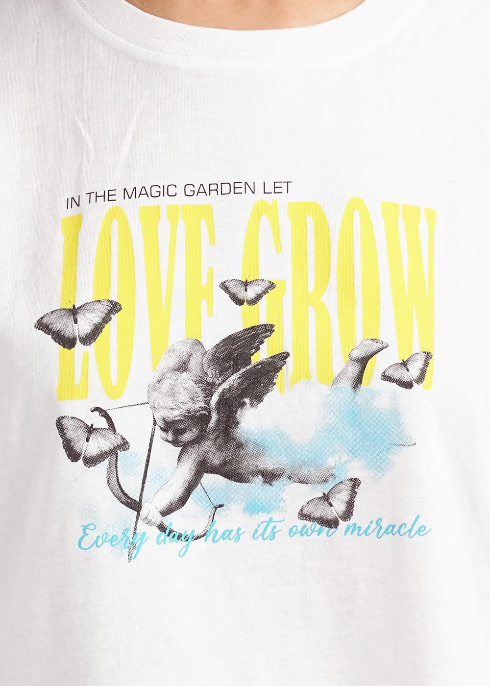 Футболка прямого силуэта свободного прилегания с втачным рукавом, горловина обработана обтачкой