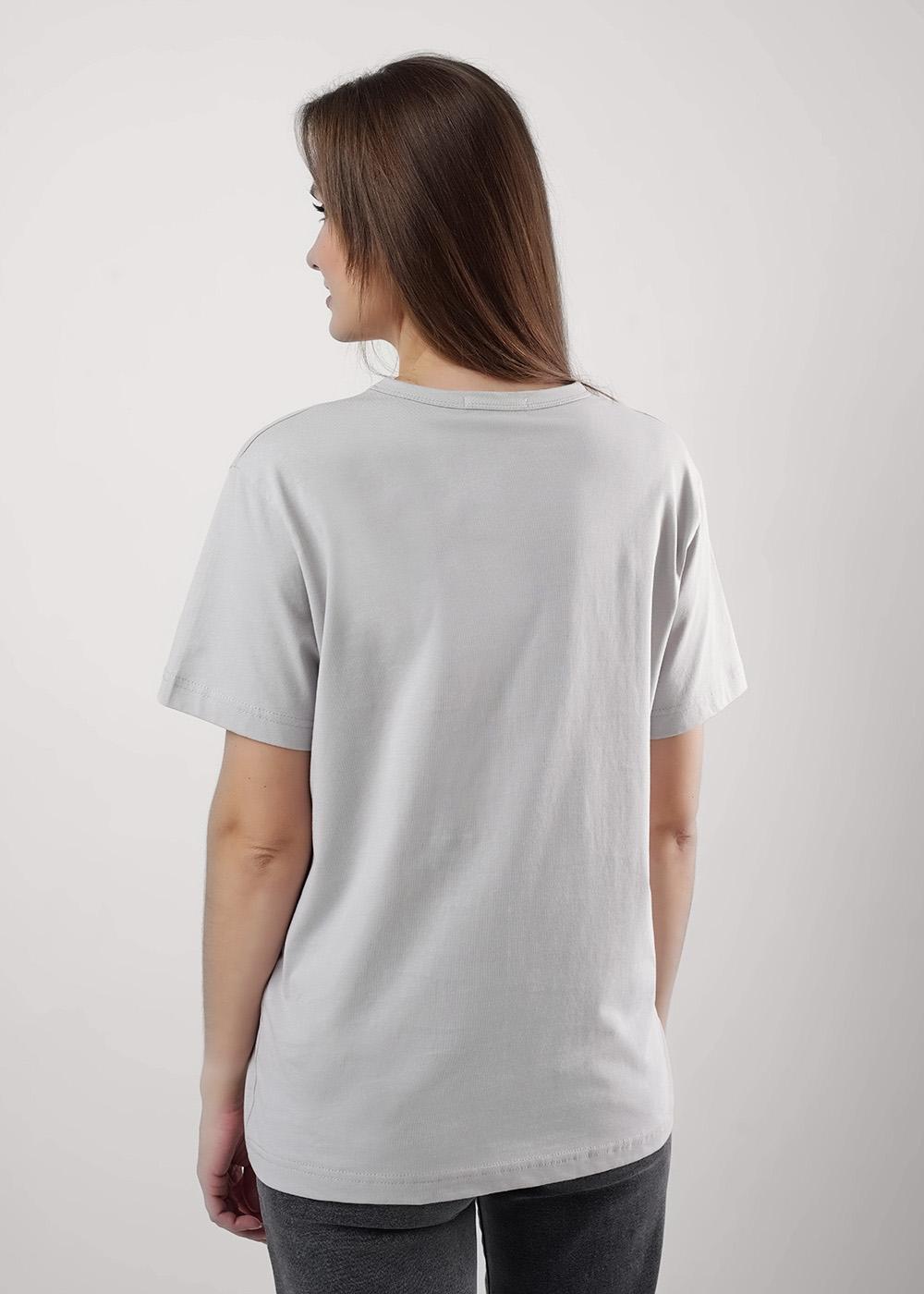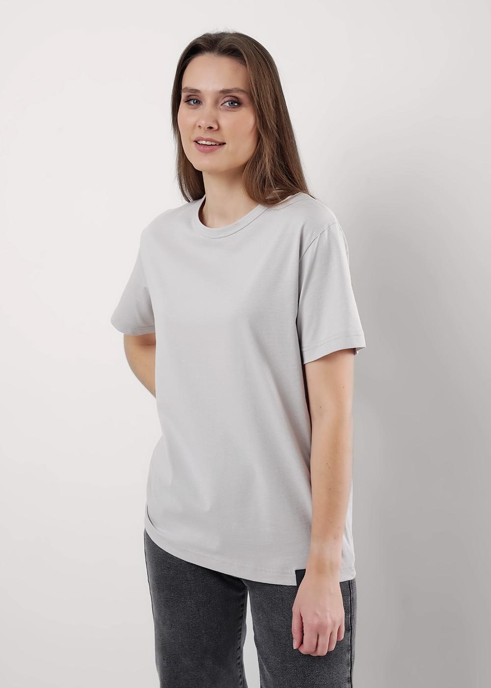 Футболка умеренного объема из хлопкового трикотажного полотна. Втачной короткий рукав. Округлая горловина с окантовкой. Внизу нашивка жаккард.