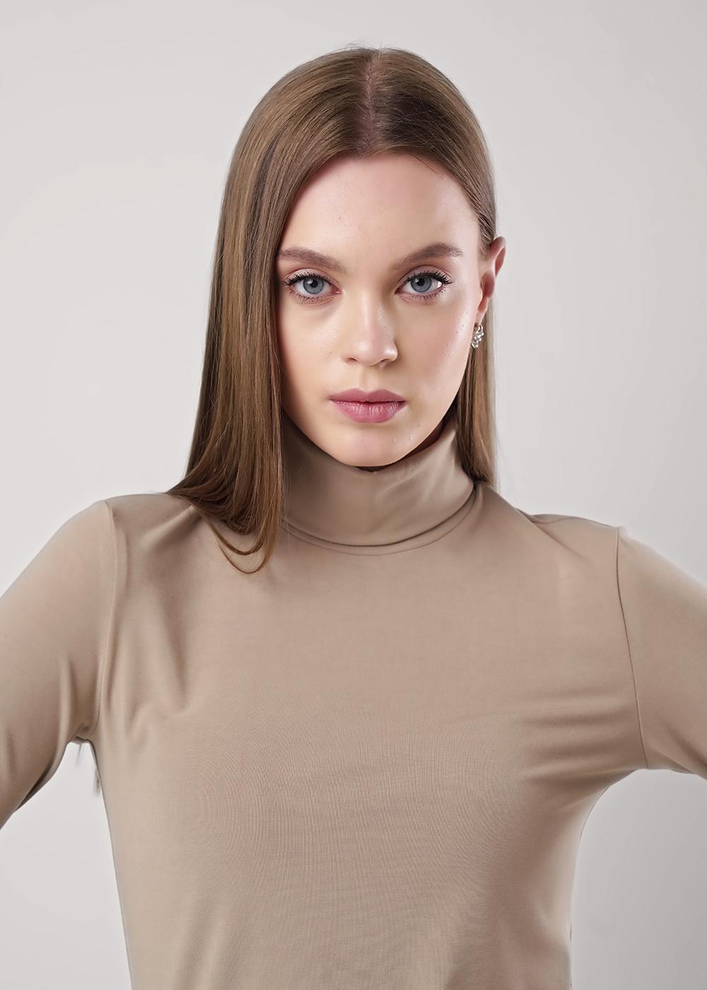 Водолазка из трикотажного полотна рибана с вискозой. Длинный втачной рукав. По горловине стойка.