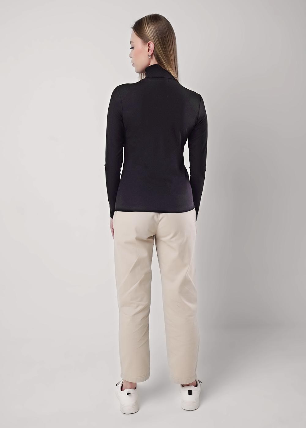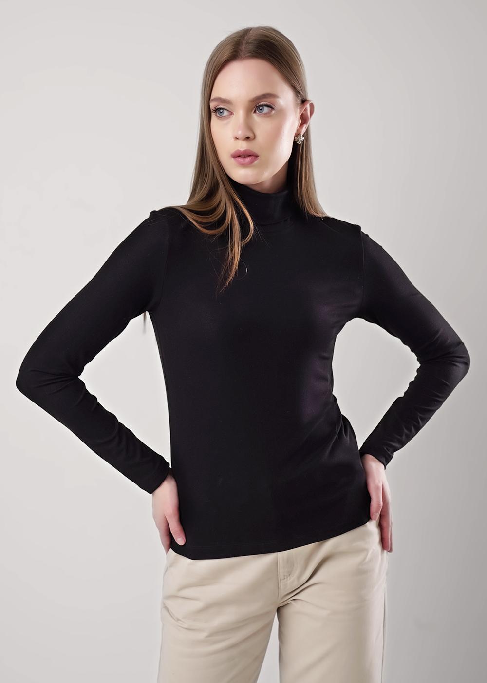 Водолазка из трикотажного полотна рибана с вискозой. Длинный втачной рукав. По горловине стойка.