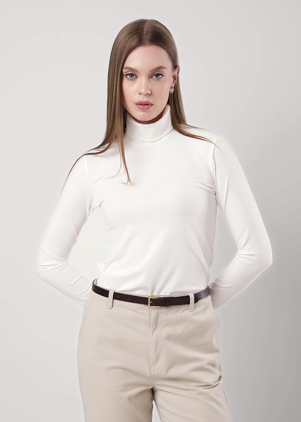 Водолазка из трикотажного полотна рибана с вискозой. Длинный втачной рукав. По горловине стойка.