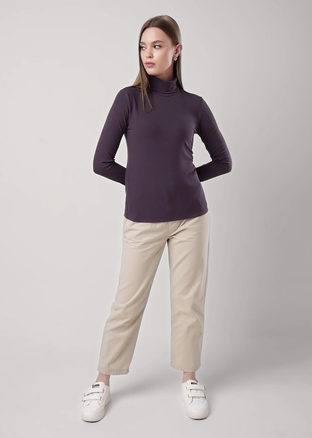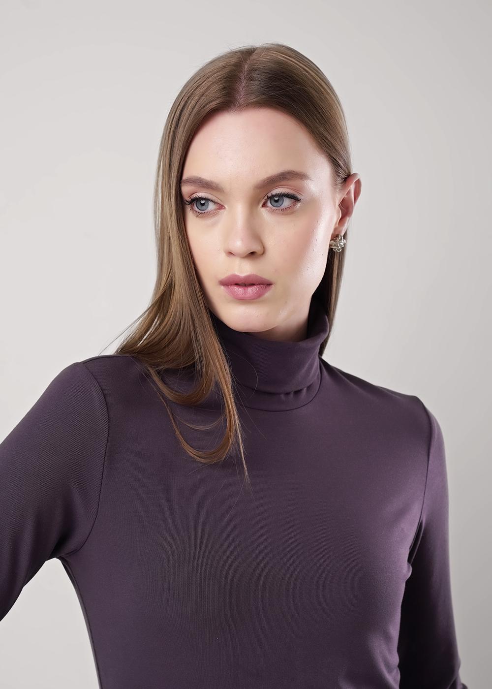 Водолазка из трикотажного полотна рибана с вискозой. Длинный втачной рукав. По горловине стойка.