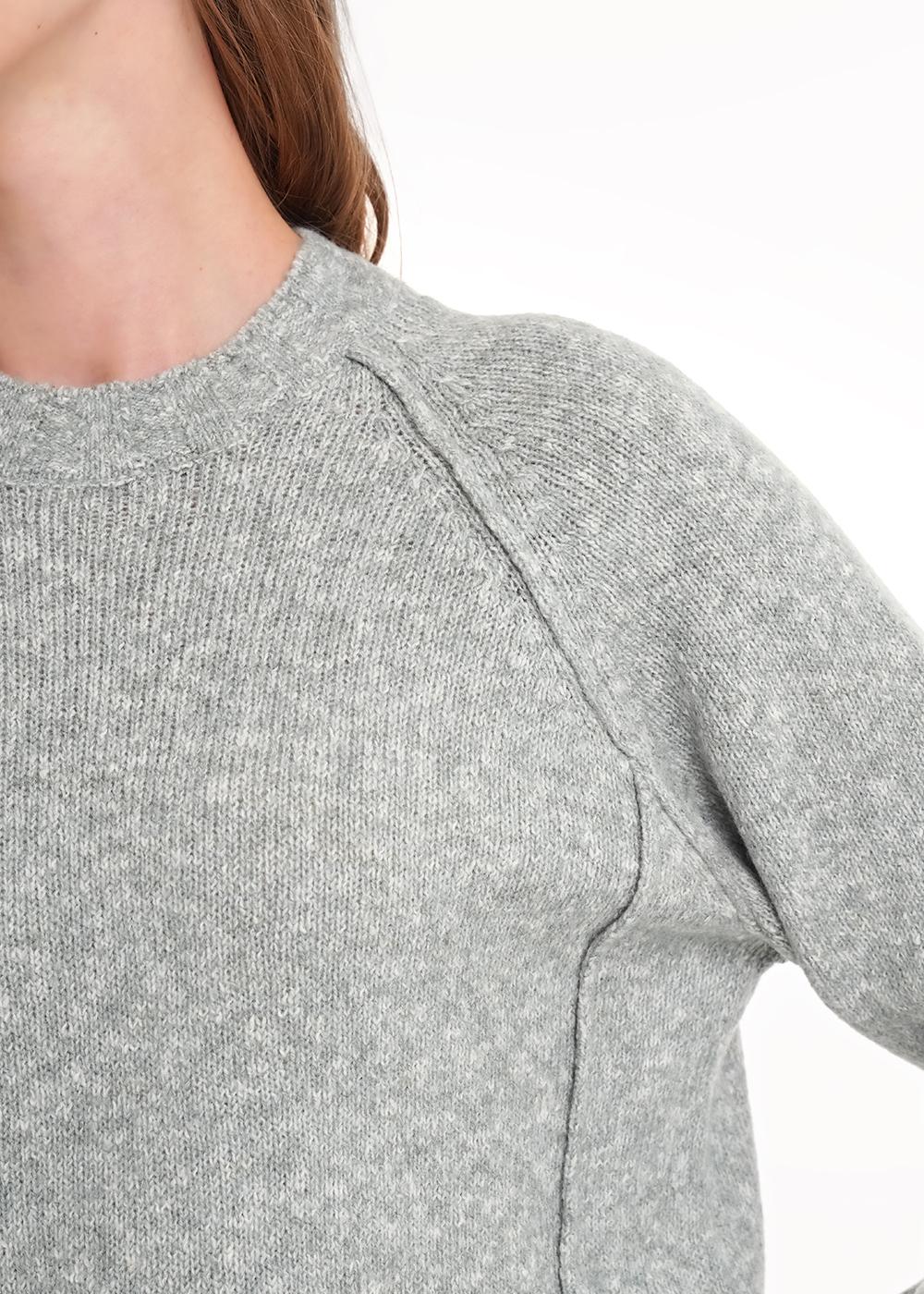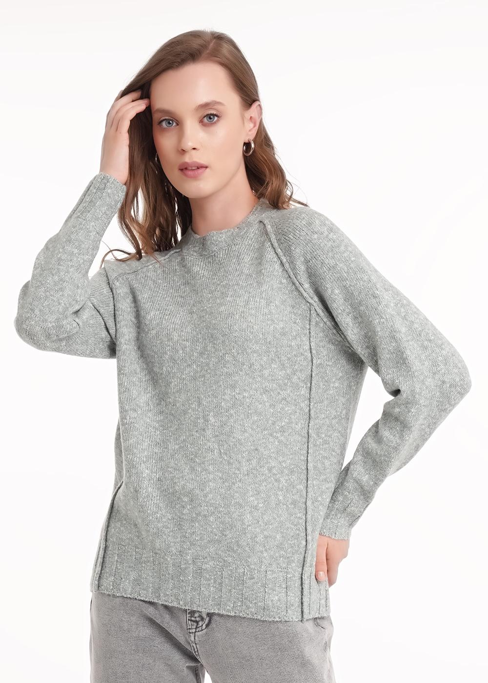 "Описание: Вязаный джемпер прямого силуэта из акриловой пряжи с добавлением хлопка.Основное переплетение гладь. Длинный рукав реглан. Припуски наружу ,красивые сбавки по рукаву реглан. По низу рукава и изделия манжеты. Округлая горловина с бейкой.