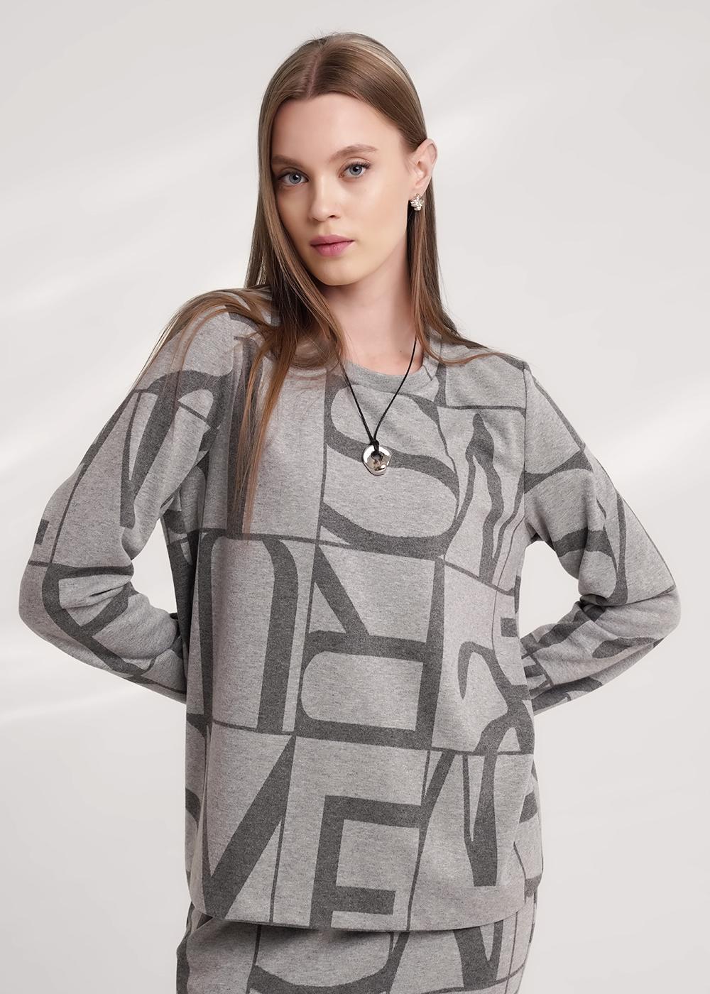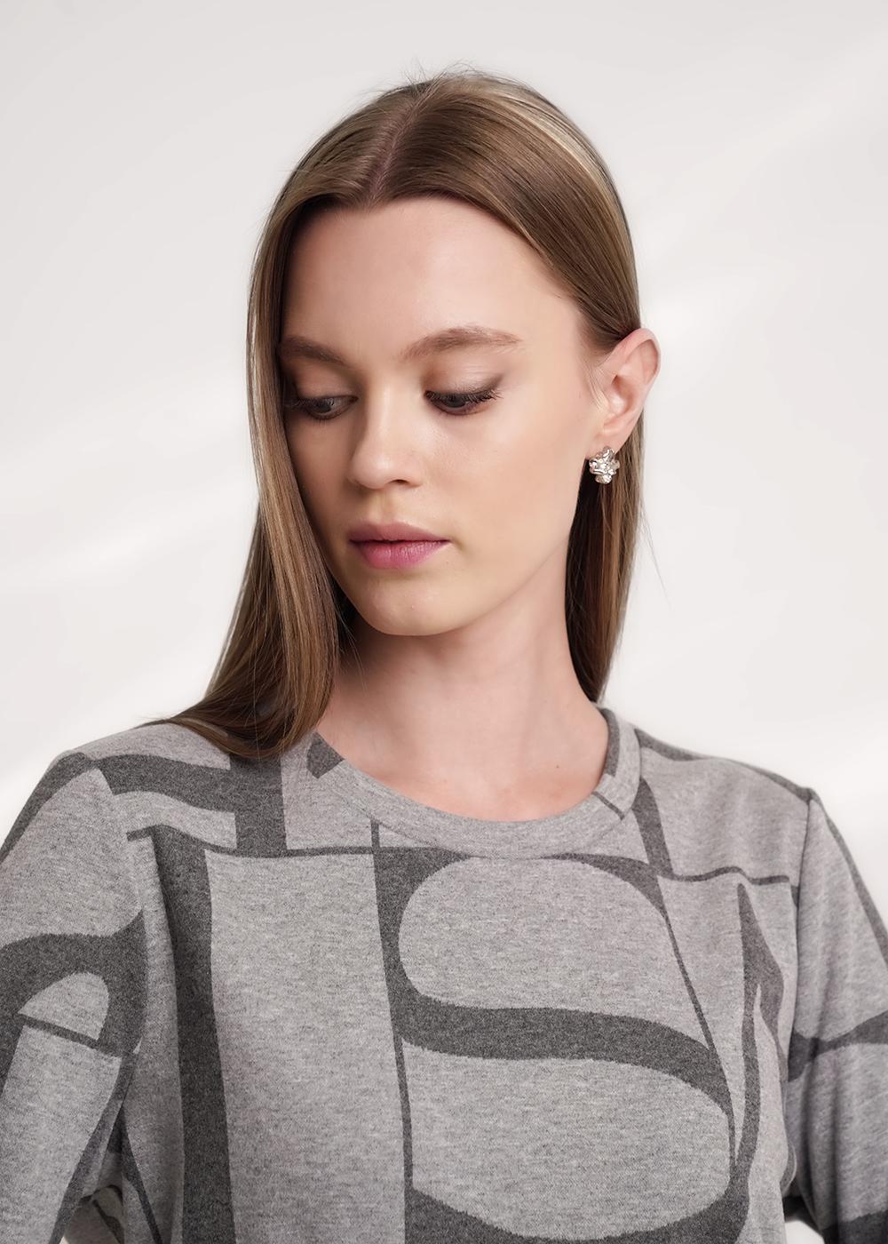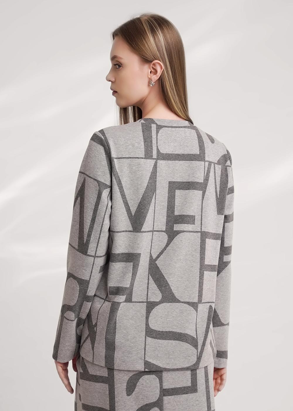 "Описание: Джемпер из поливискозного трикотажного полотна джерси жаккард, умеренного объема. Длинный втачной рукав. Округлая горловина с обтачкой. По низу рукавов и изделия потайной стежок.