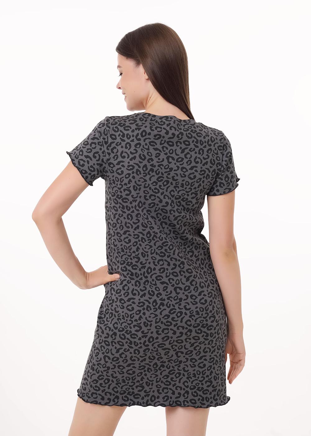 Описание: Платье для дома и отдыха из хлопкового трикотажного полотна с эластаном - кашкорсе. Втачной короткий рукав. Округлая горловина с обтачкой. По низу рукава и изделия мелкий оверлок. Спереди нашивка.