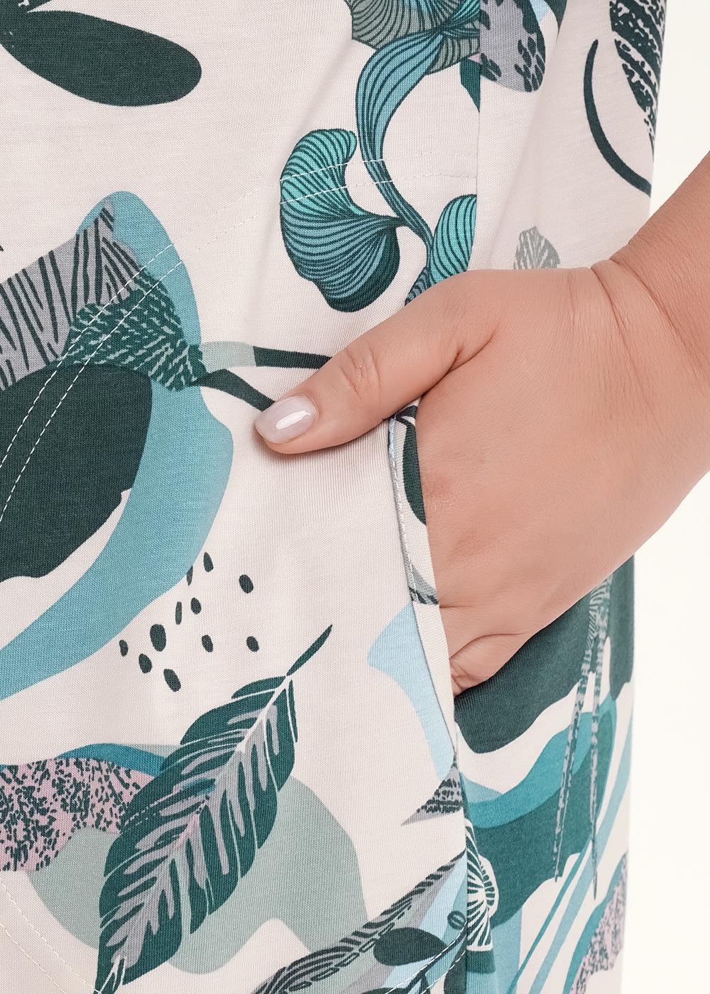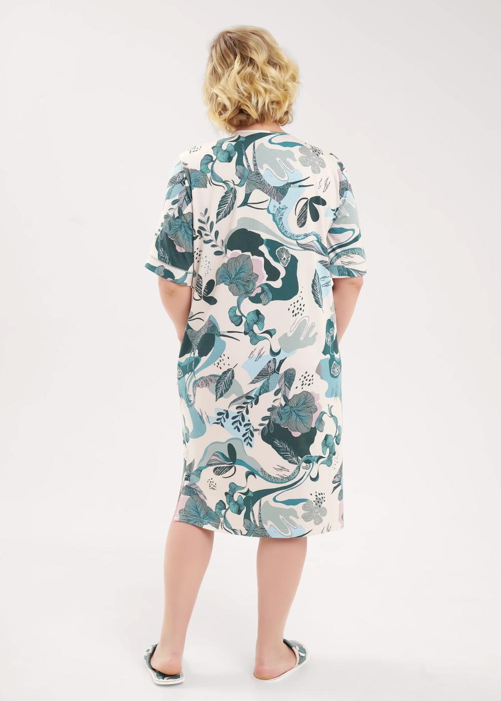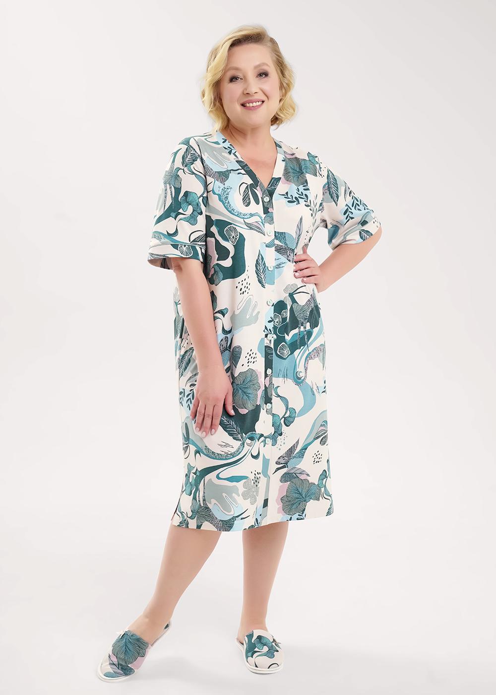 Описание: Платье прямого силуэта из трикотажного полотна с добавление модала. По горловине и борту обтачка с застежкой на пуговицы. Короткий втачной рукав, по низу рукава манжет с кантом. Боковые карманы с окантовкой. Боковые разрезы.