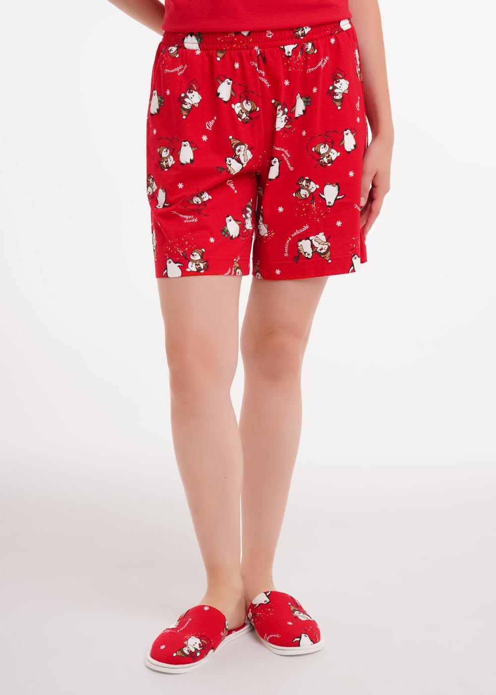 Описание: Набор одежды из хлопкового трикотажного полотна. Футболка прямого кроя. Короткий втачной рукав, нашивка. Округлая горловина с обтачкой. Спереди принт. Шорты с поясом на внутренней резинке. Боковые карманы с отрезным бочком.