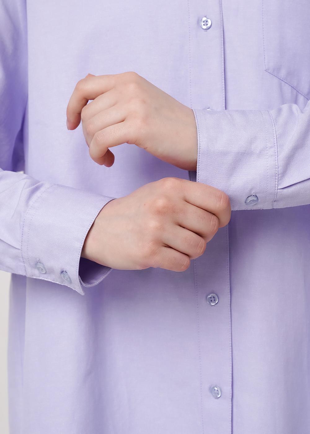 "Описание: Рубашка из текстильного полотна поплин, прямого силуэта на пуговицах с отложным воротником на стойке.По спинке кокетка.Рукав рубашечный полной длины, по низу рукава манжеты на пуговицах, низ изделия фигурный, спереди нагрудный карман.Производство Турция.